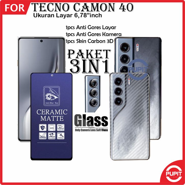 Tempered Glass Paket Hemat 3in1 Pelindung Layar Tecno Camon 40 Tempered Glass Antigores Full Cover