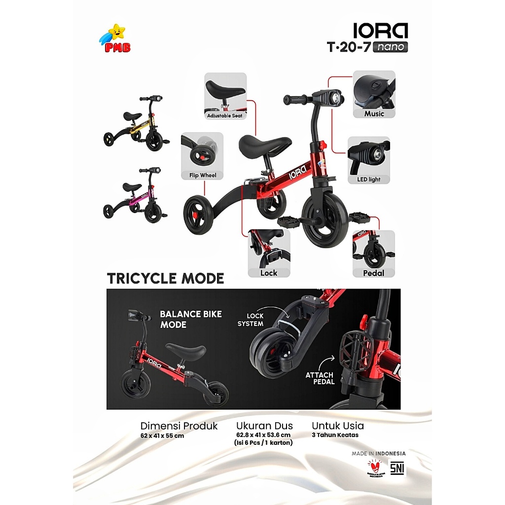 Sepeda Anak Roda 3 Tricycle PMB IORA - NUWA Balance Bike Push Bike Sepeda Anak Roda Tiga/Sepeda Anak