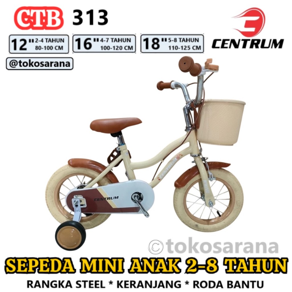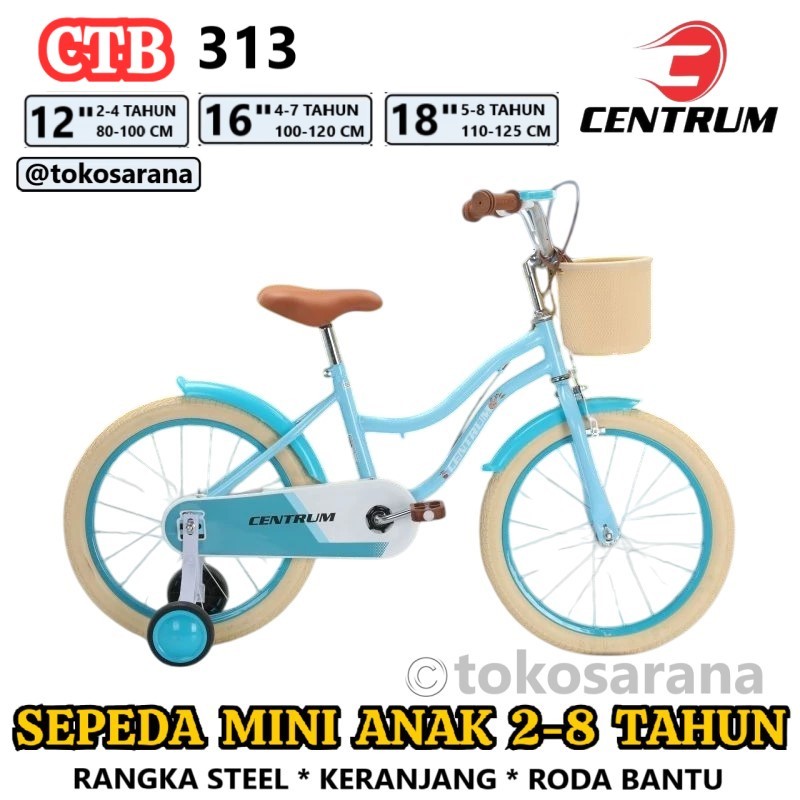 Sepeda Mini Anak Centrum CT313 CTB 2-8 Tahun 12" 16" 18" Keranjang Roda Bantu Girl Bike Perempuan