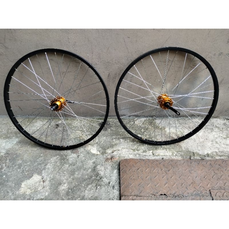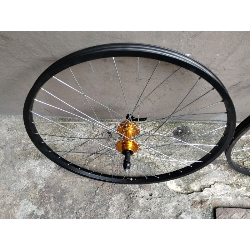 Velg Wheelset Sepeda alloy Hub model sproket drat husus rem cakram 1 Set Depan Belakang