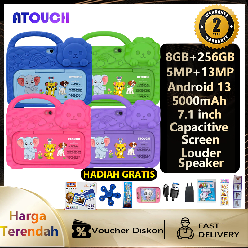 ATOUCH【BELI 1 GRATIS 8】8GB+256GB STUDY ANAK TABLET ANDROID13 TABLET BELAJAR ANAK EDUKASI TABLET ANAK