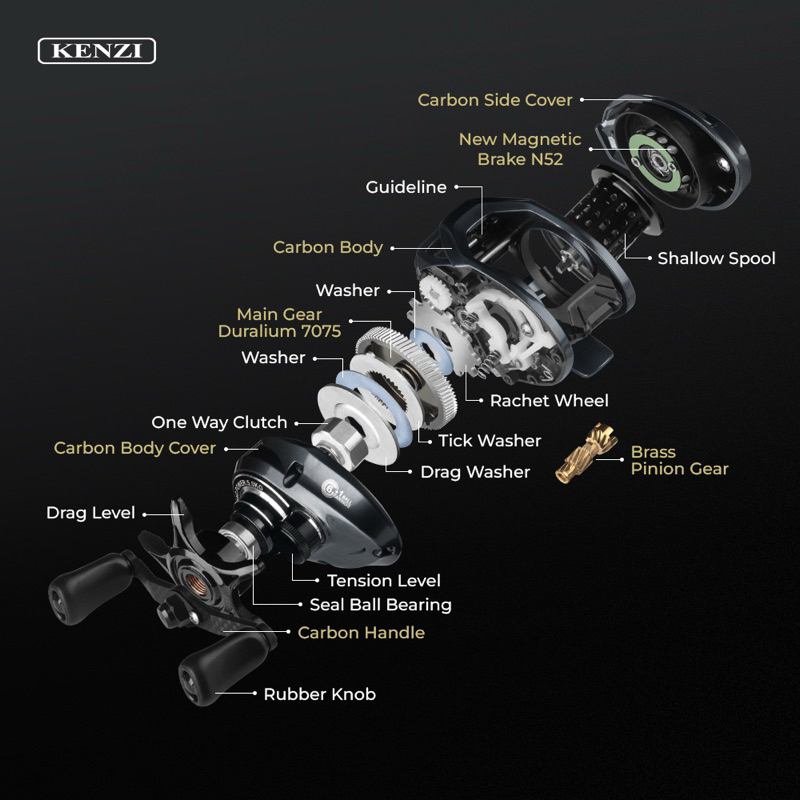 REEL KENZI ZENIX 150L BAITCASTING BC NEW MAGNETIC BRAKE SYSTEM FULL BODY CARBON