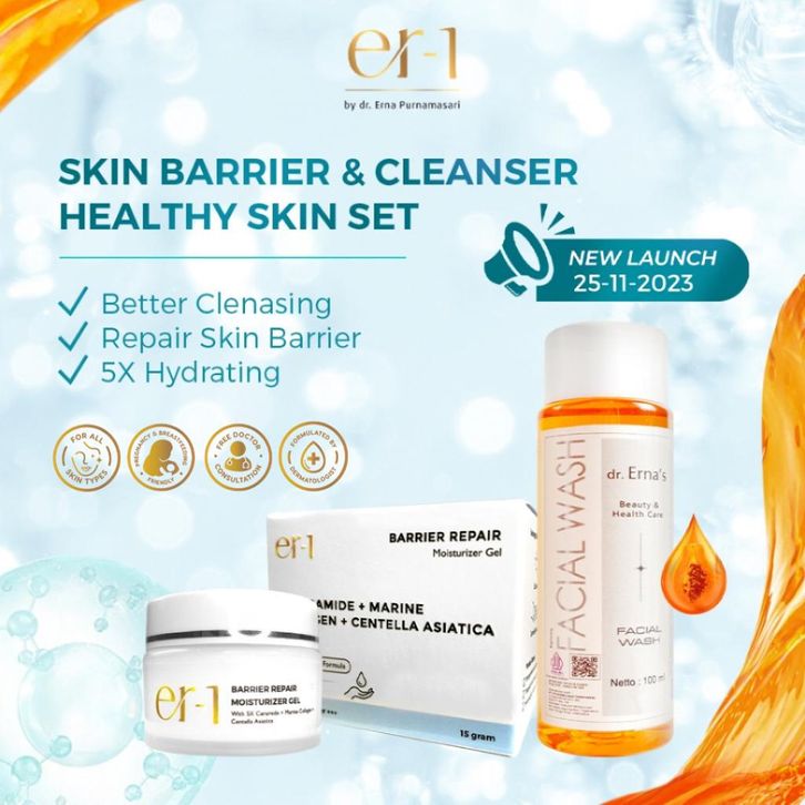 er-1 by dr. Erna Skin Barrier & Cleanser Healthy Skin Set 2 Pcs - Paket Skincare Facial Wash Moisturizer Gel Sabun Cuci