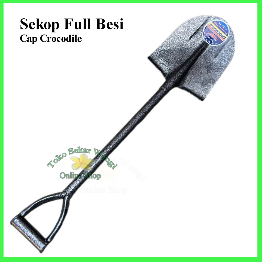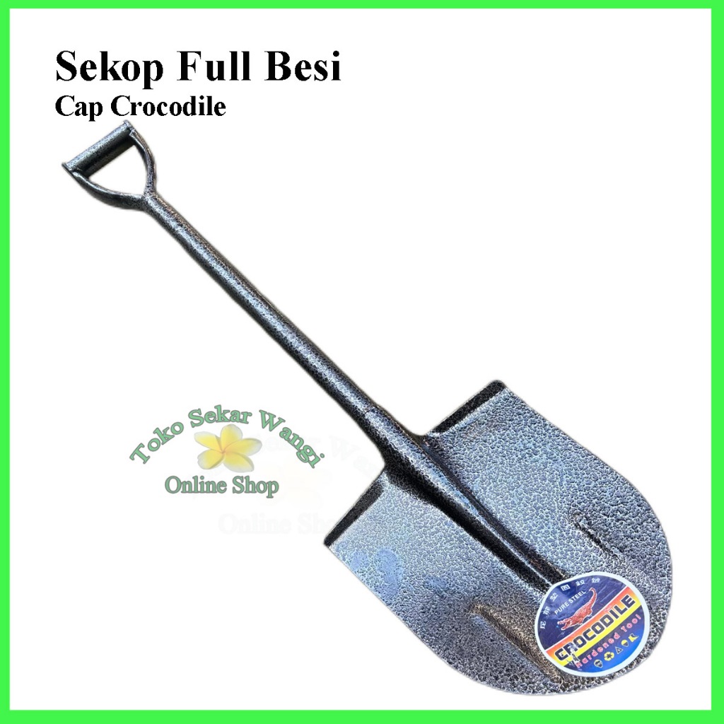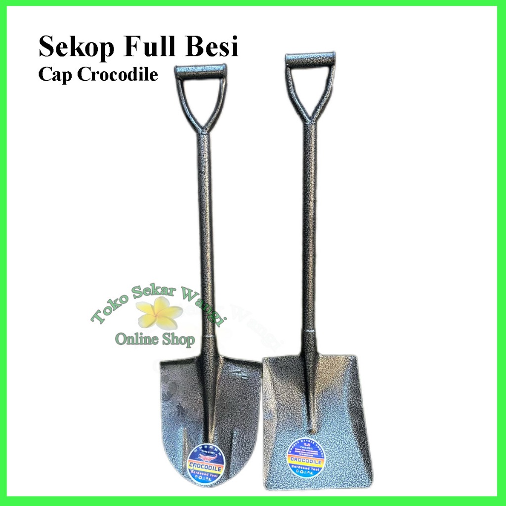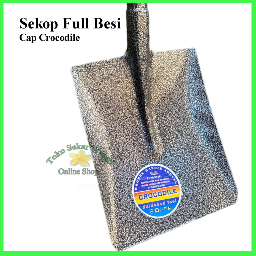 Sekop Pasir Crocodile Gagang Besi Ukuran Besar Skop Full Besi Coating Hammertone