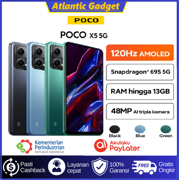 POCO X5 5G (6/128GB) (8/256GB) | Snapdragon® 695 5G | Layar 6.67" AMOLED 120Hz | Triple Kamera 48MP | 5000mAh 33W