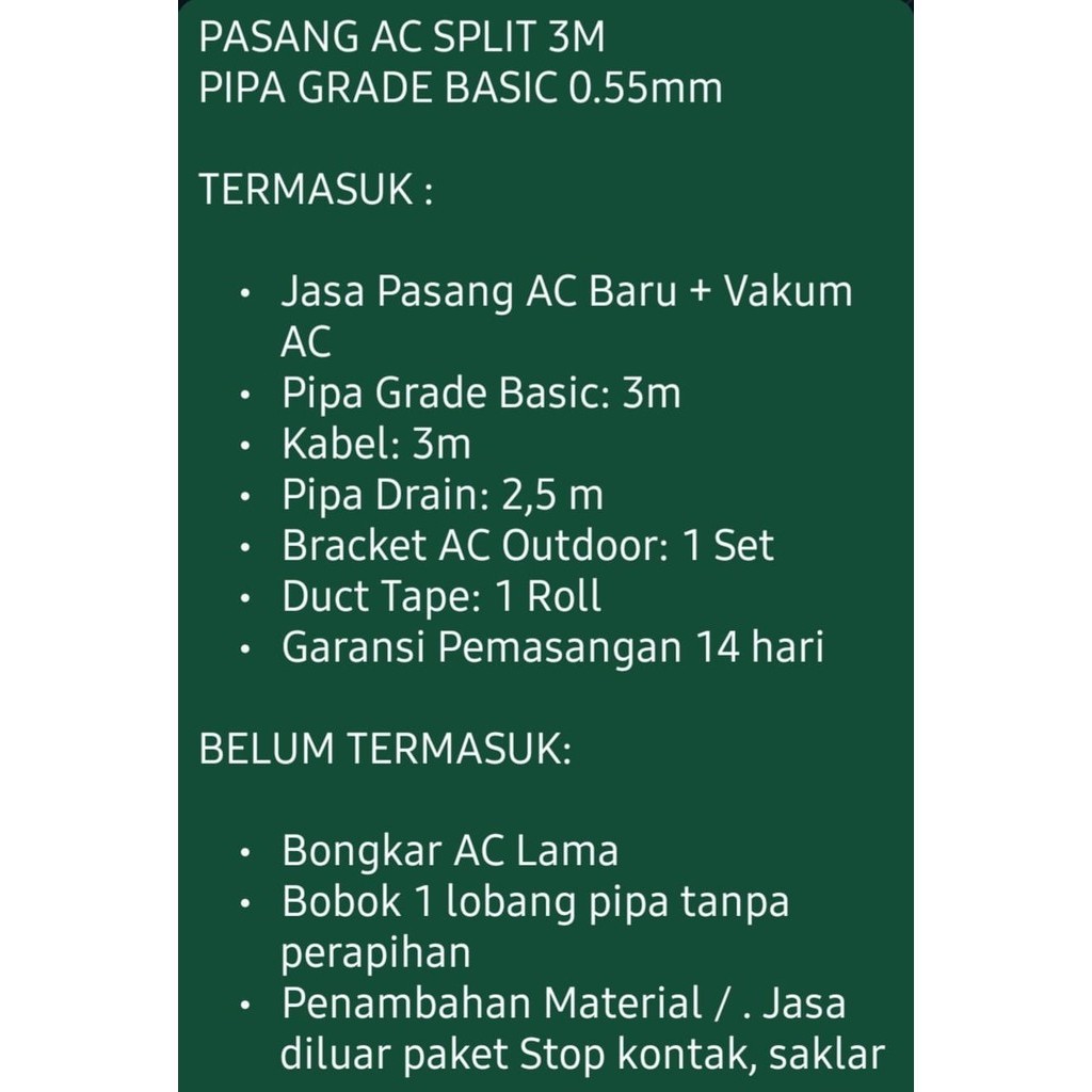 PASANG + PIPA 6METER, PASANG + PIPA 8METER, PASANG + PIPA 5METER, PASANG + PIPA 10MTER, PASANG + PIPA 9METER, UNIT + PASANG, PASANG + PIPA 7METER, UNIT ONLY, PASANG + PIPA 3METER