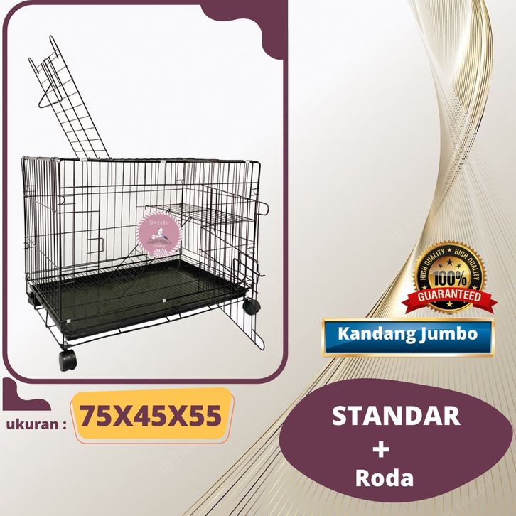KANDANG KUCING JUMBO BESI LIPAT + RODA 75X45 BESI TEBAL