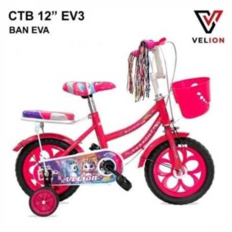 Sepeda Roda Tiga Anak Perempuan Usia 2 - 4 Tahun EVA Mini 12 Inch Ban Busa Anti Kempes Polos