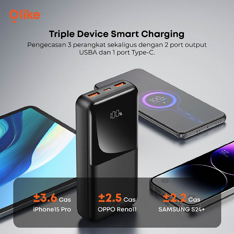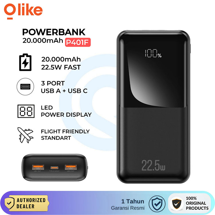 Olike P401F Power Bank 20000mAh 22.5W PD QC 3.0 USB TYPE C 3Port Output Fast Charging Quick Charge