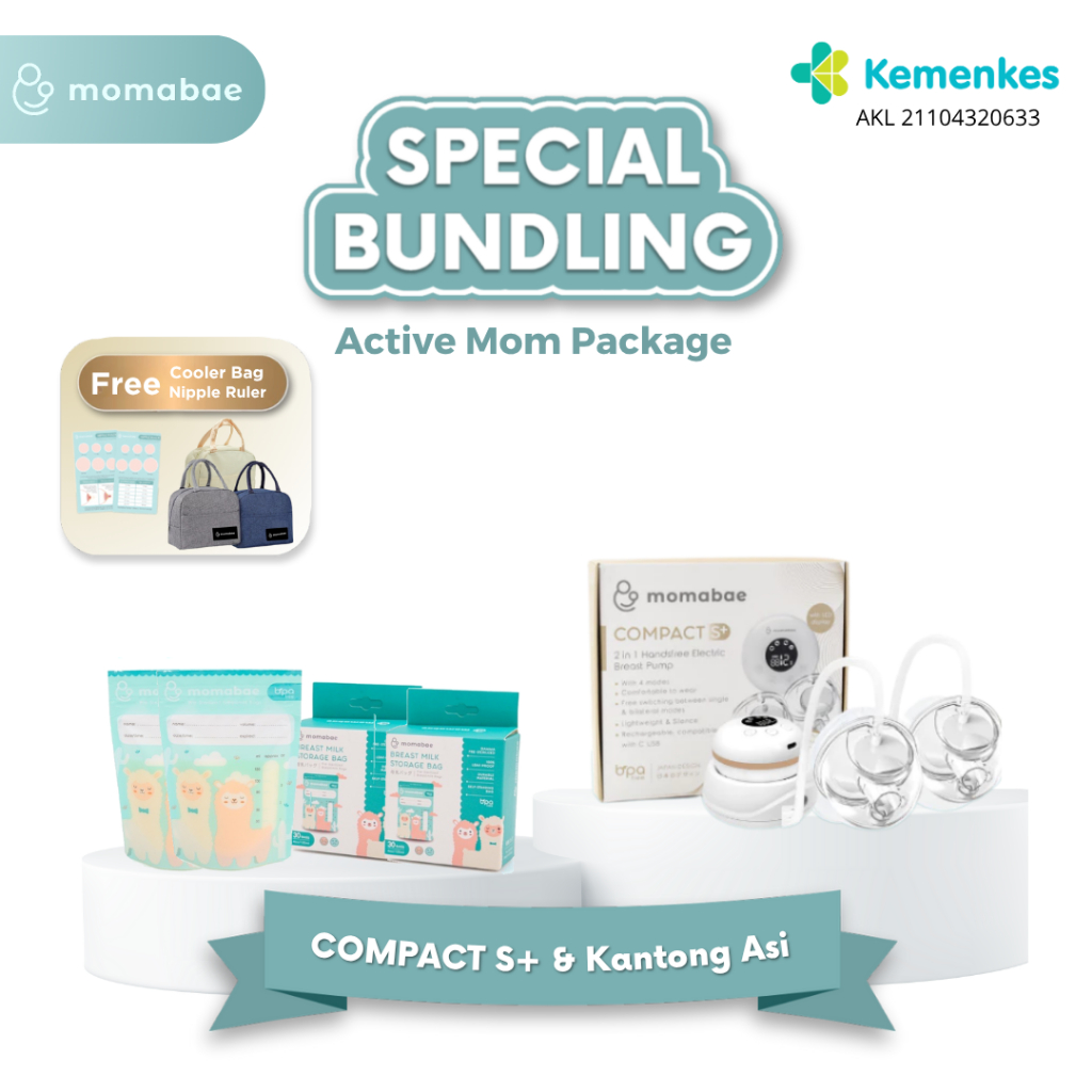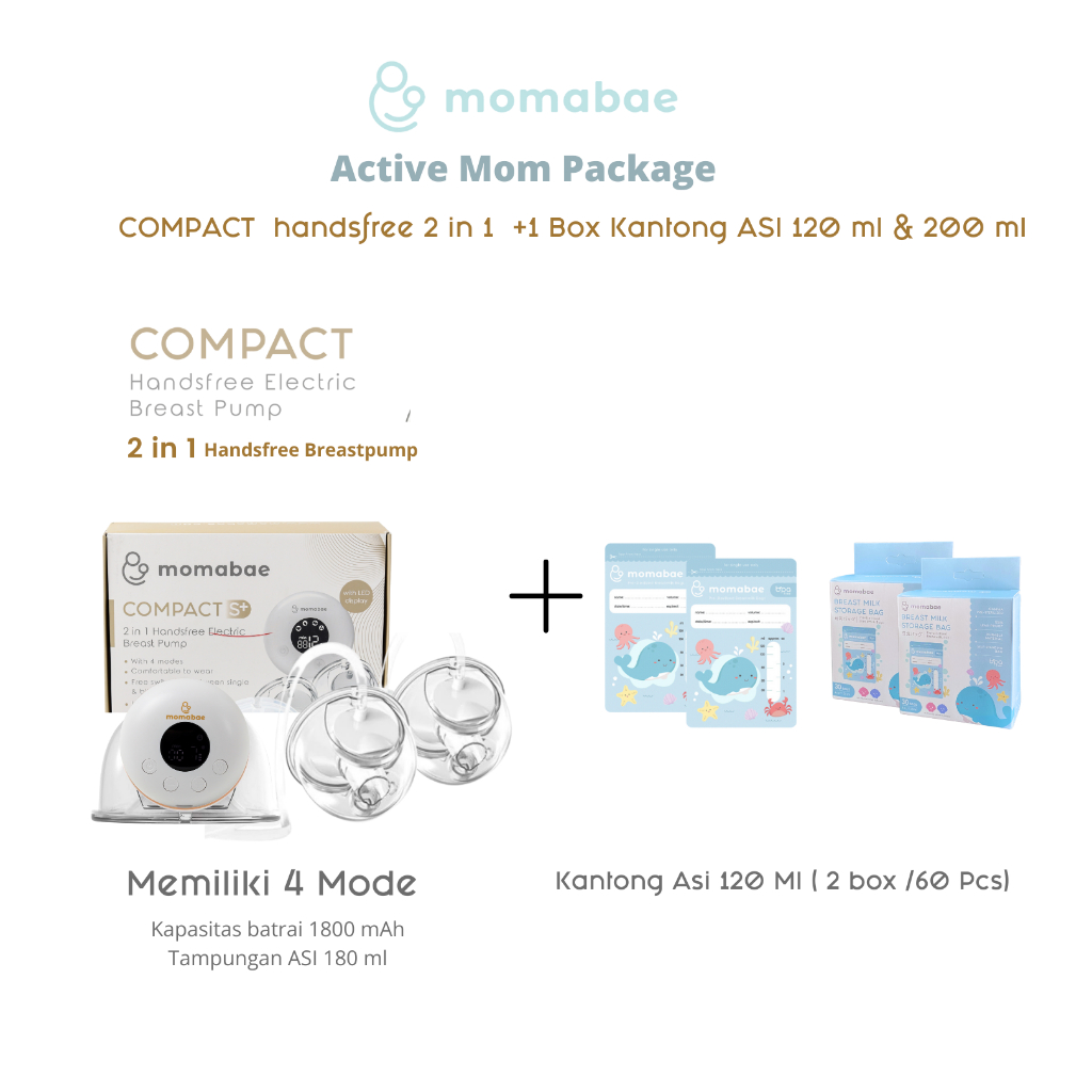 MOMABAE Bundling COMPACT S+ – 2 IN 1 + Kantong ASI 120 ml (2 BOX) KANTONG ASI Handsfree Breast Pump / Pompa ASI Elektrik