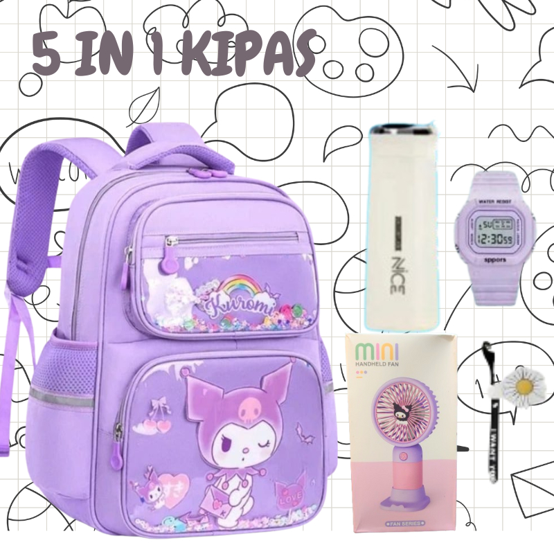 Tas Ransel Kuromi Rainbow Anak Perempuan Ransel Anak Sekolah TK SD SMP