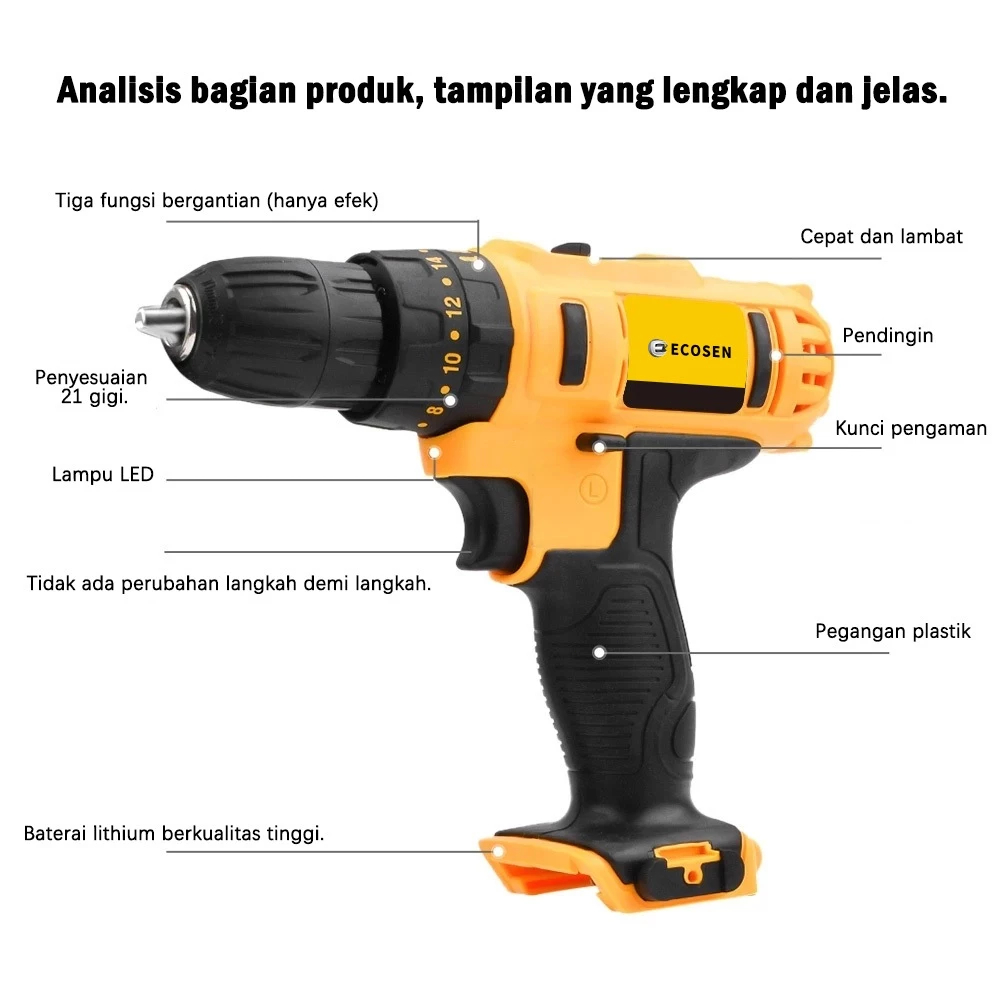 ECOSEN Bor Listrik Mesin Bor Bor Tanpa Kabel Bor Tangan Elektrik Drill Bor Impact Cordless ECO72