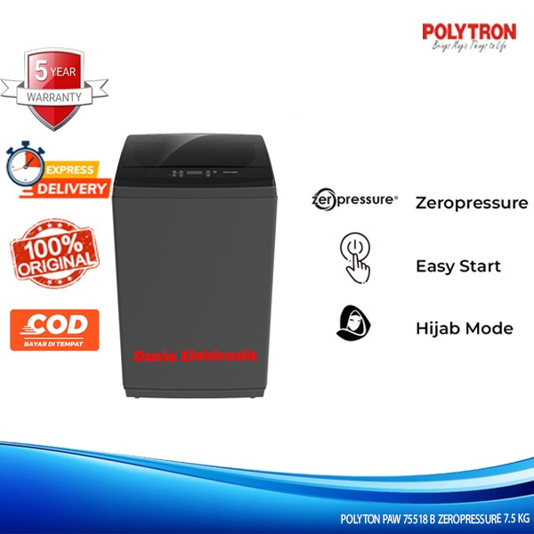 POLYTRON Mesin Cuci 1 Tabung 7,5 KG PAW 75518 B ZEROPRESSURE Ultra Dry