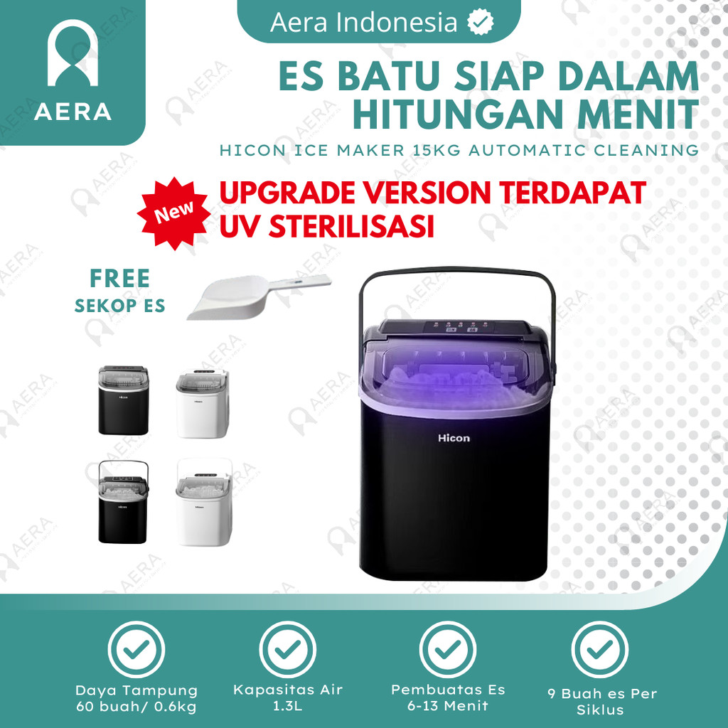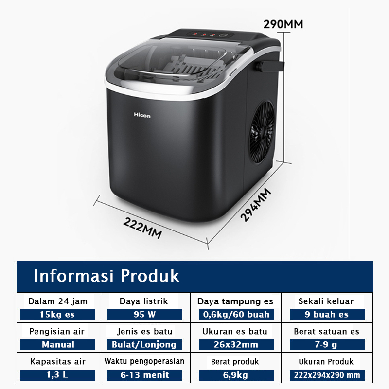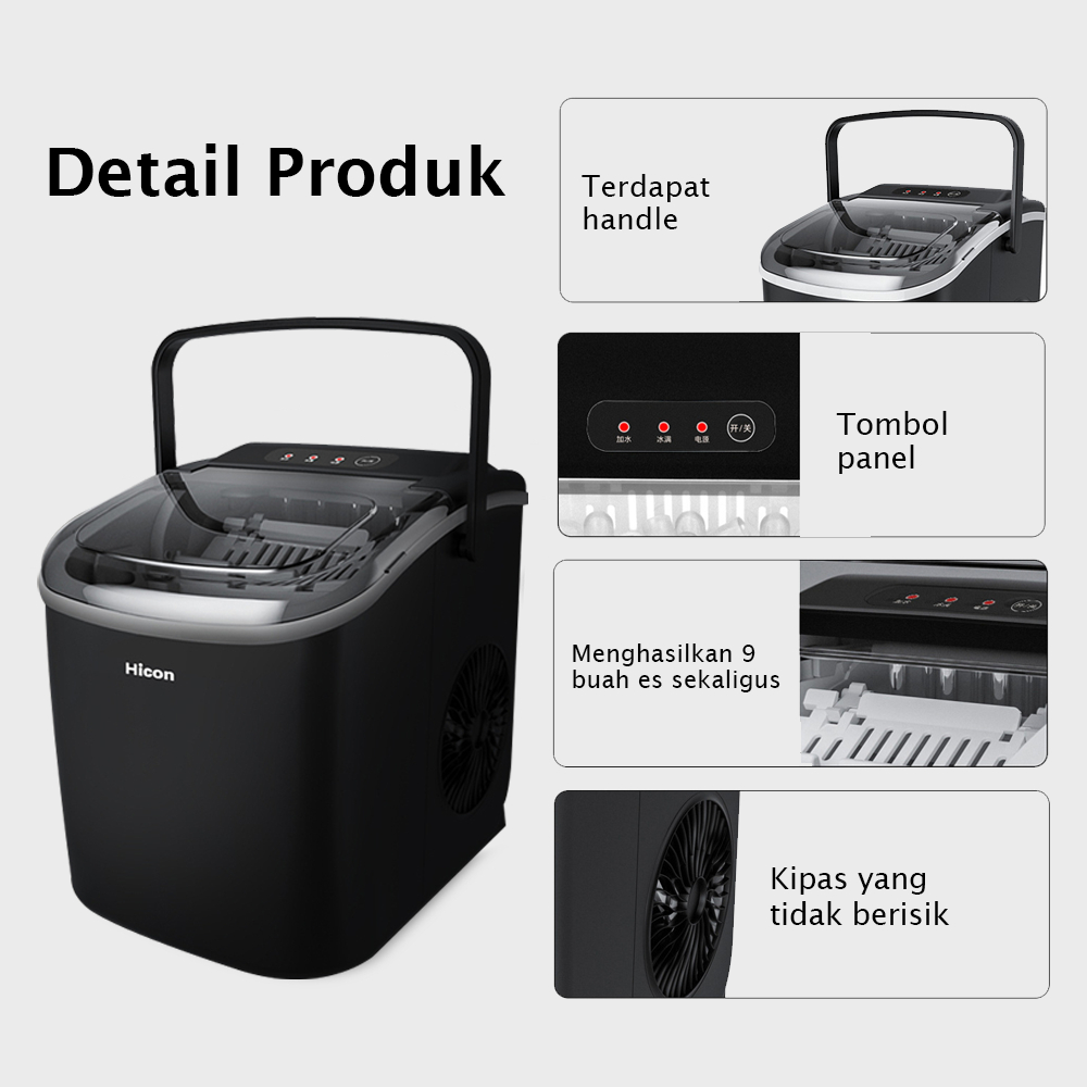 Hicon Ice Maker 15kg Automatic Cleaning | Mesin Pembuat Es Batu 15kg 6 Menit | Home Ice Maker Machine Portable