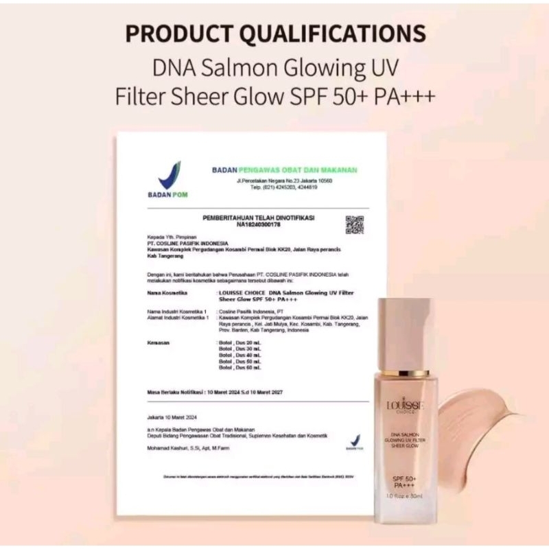 100 PERSEN Original Louisse Choice Sunscreen Dna Salmon Glowing Uv Filter Spf 50 Pa+++ Exp Juni 2027