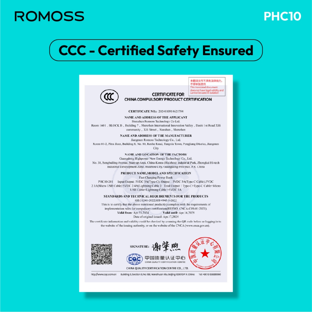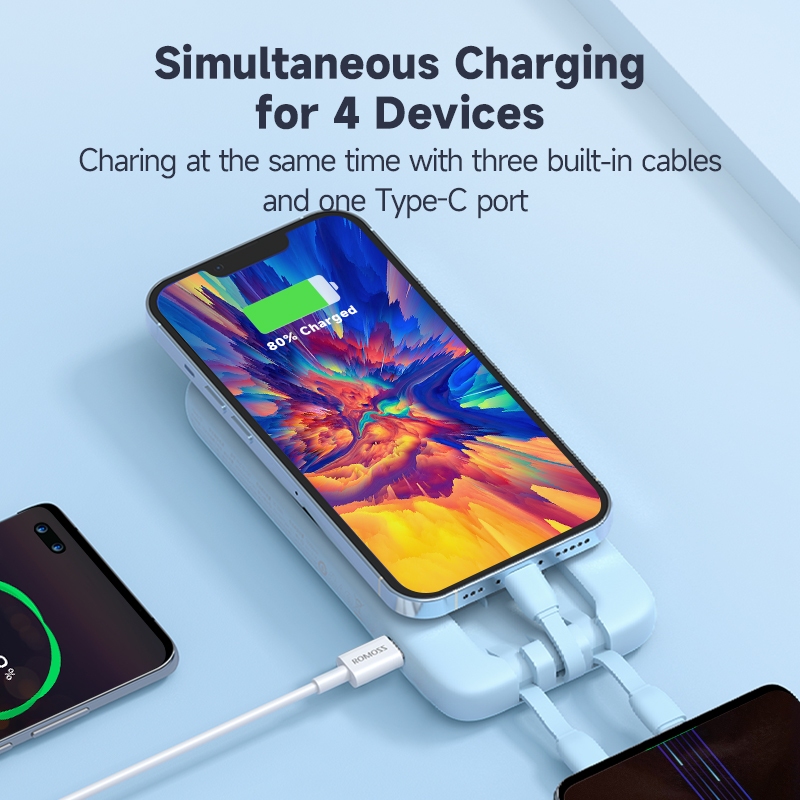 [Star] Romoss Powerbank PHC10 Fast Charging Built-in 3 Cables 10.000mAh 15W