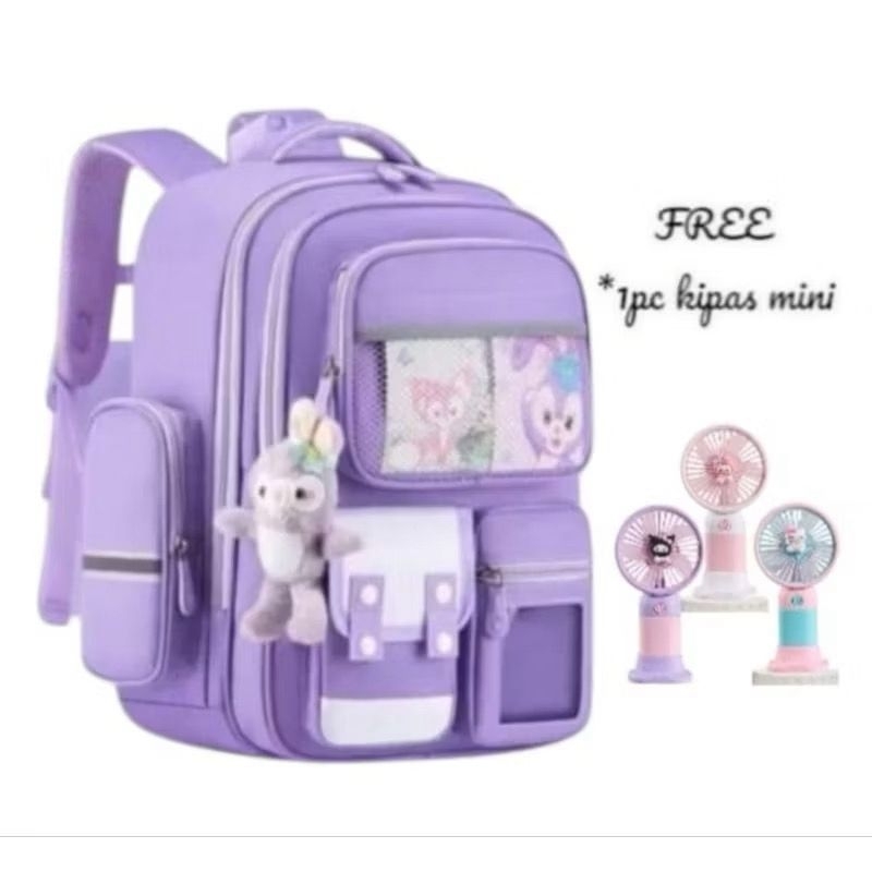 Tas Ransel 2in1 Motif Fox Ransel Anak Sekolah Perempuan TK SD SMP SMA Free Kipas
