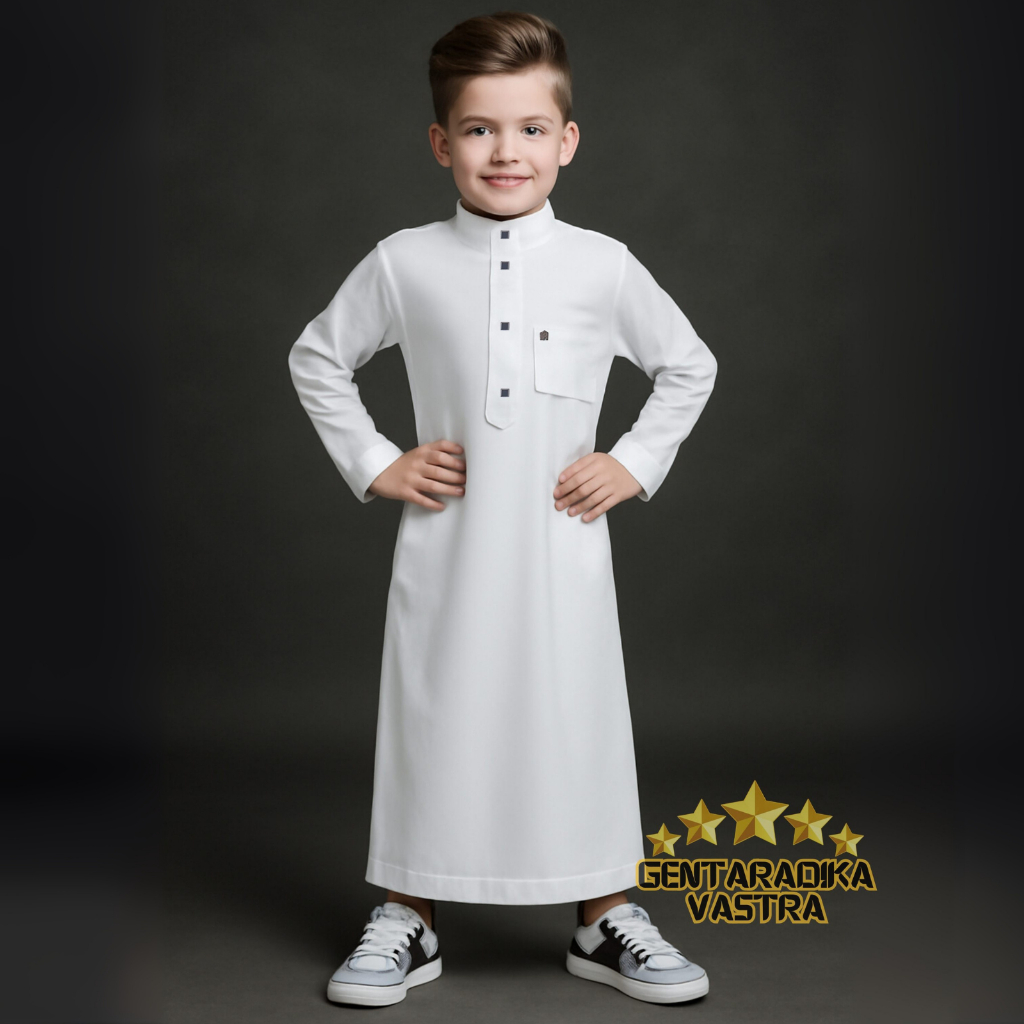 Jubah Gamis Anak Laki-laki Usia 1-16 Tahun Model Saudi Arabia Katun Kerah Tegak Bahan Adem Lembut Berkualitas Termurah