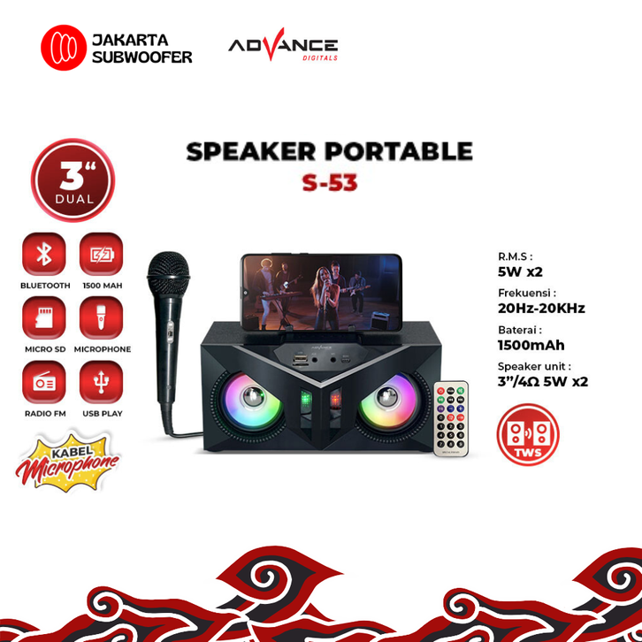 [Mall] Speaker Bluetooth Advance S53 Salon Aktif 5 inch Blutut Gratis 1 Mic Karoke Full Bass Subwoofer Advan