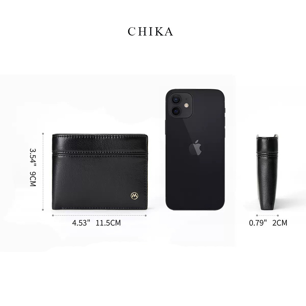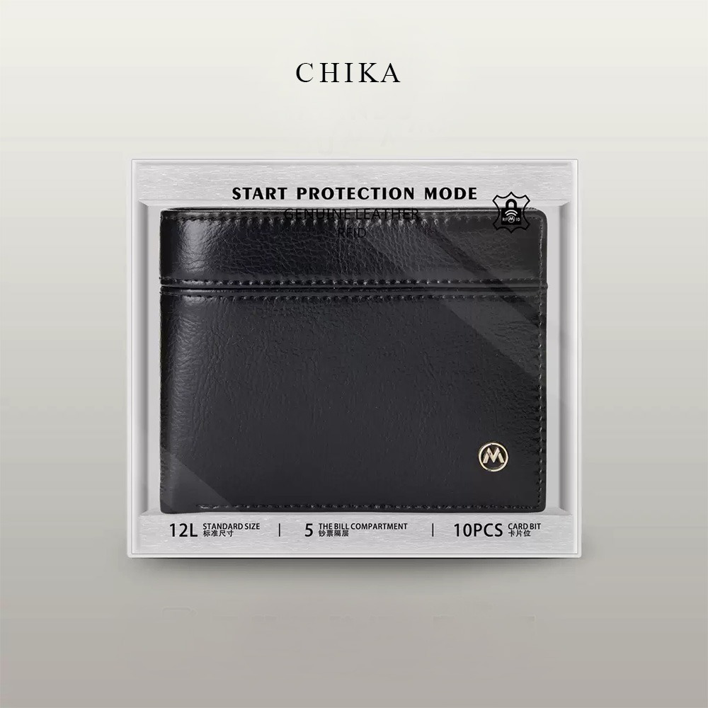 CHIKA Dompet Kulit Pria Hitam Minimalis#5503-001