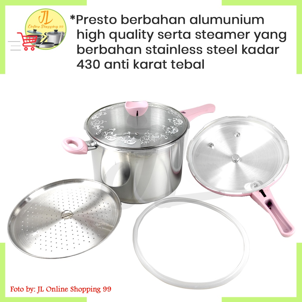 New SUPRA Panci presto 12liter + steamer + tutup kaca pastel Pink / pressure cooker alumunium / pengempuk kukusan