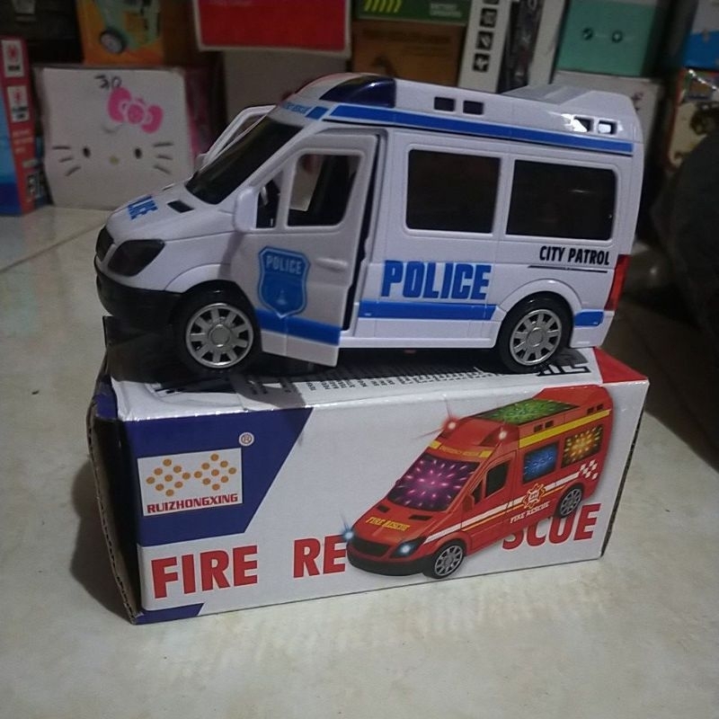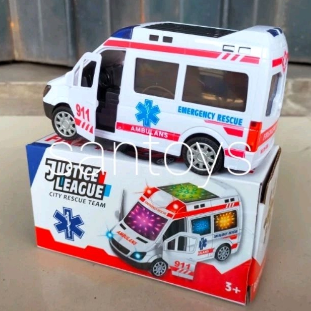 Mainan mobil ambulan bisa buka pintu jalan dan musik