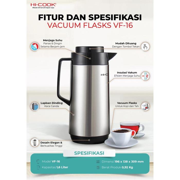 TERMOS AIR PANAS HI COOK VF 16 THERMOS VACUUM FLASK STAINLESS 1.6 LITER