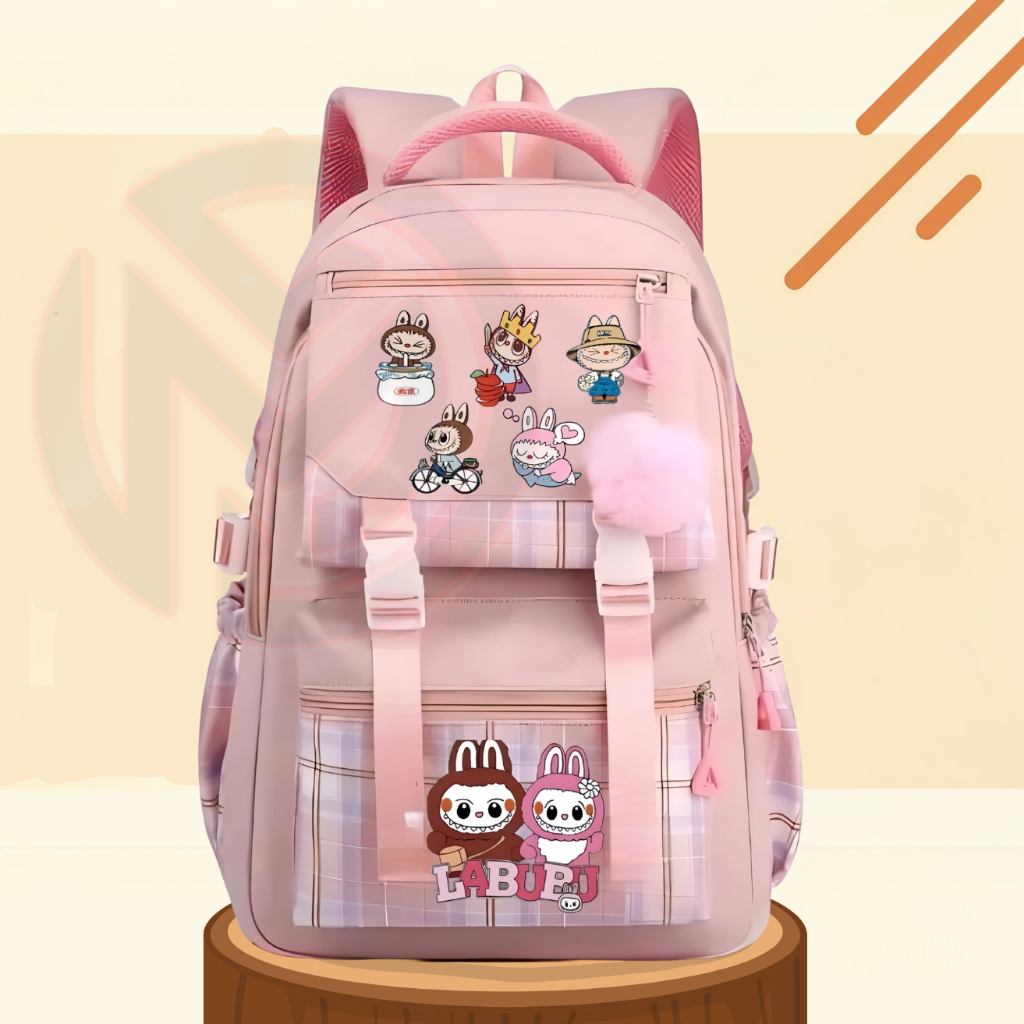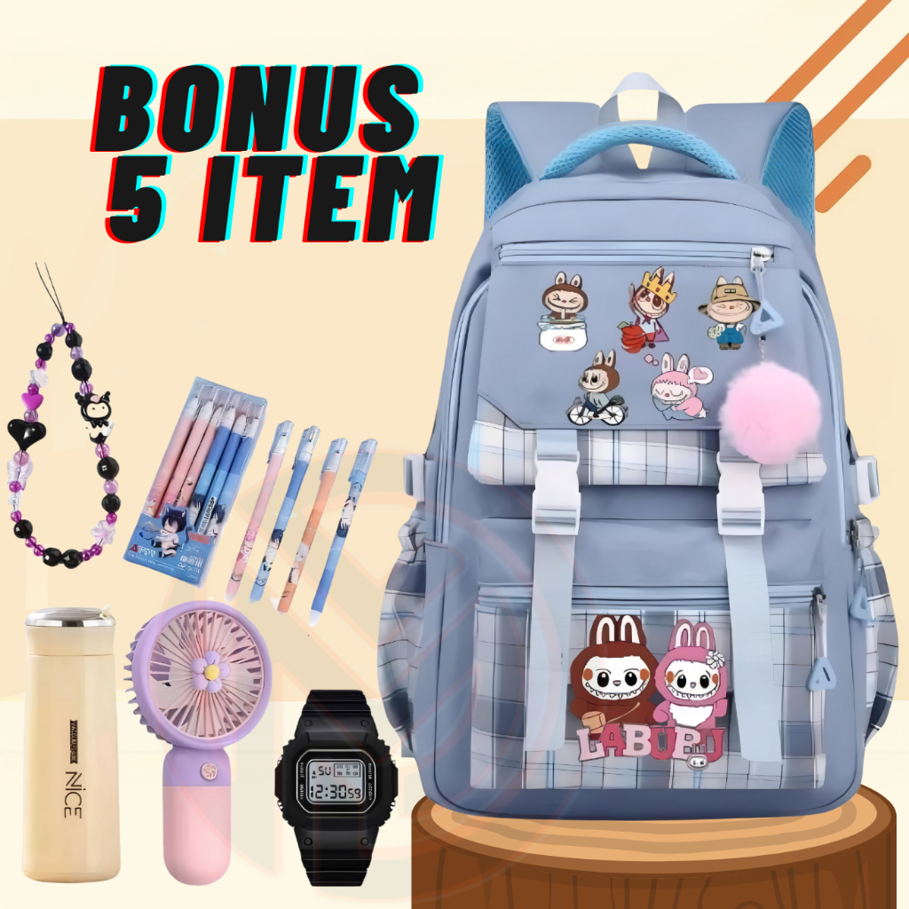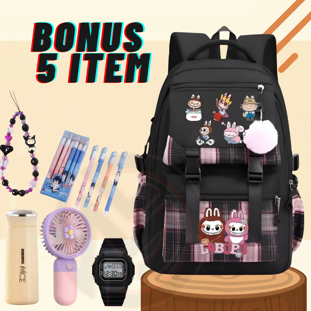 Tas Ransel Anak Perempuan LABUBU Bags Tas Sekolah Anak SD&SMP Free Botol Minum Jam Impor kipas mini ,4pena gantungan hp