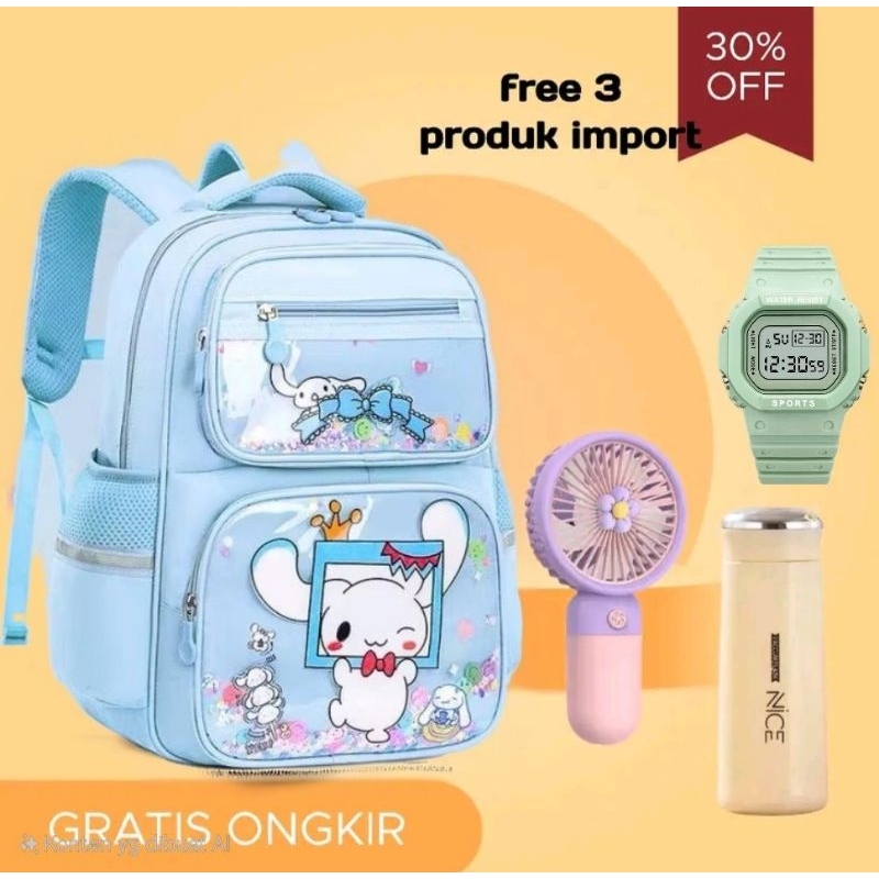 PAKET COMBO 4IN1 Tas Ransel Anak Perempuan Sekolah SD SMP Remaja Motif KUROMI MIKA