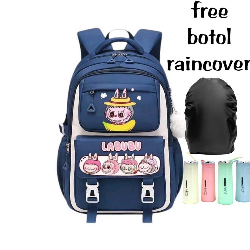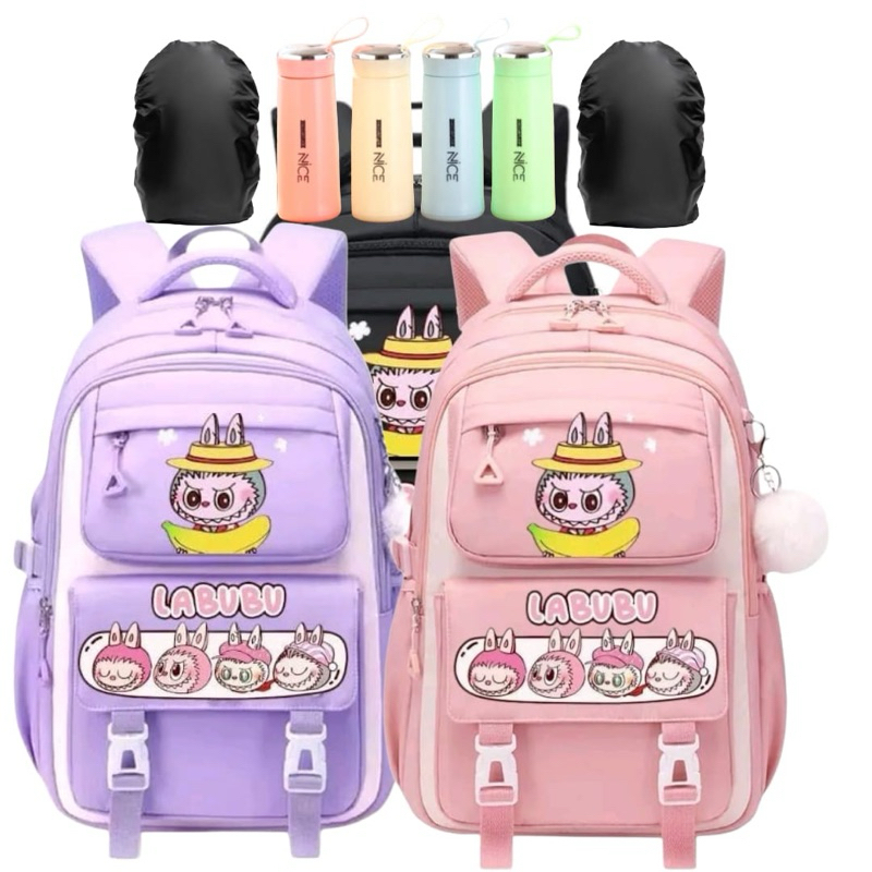 Tas SeKolah LABUBU Ransel Punggung Wanita Tas Sekolah SD Free Botol Minum+Raincover Tas LABUBU Anak