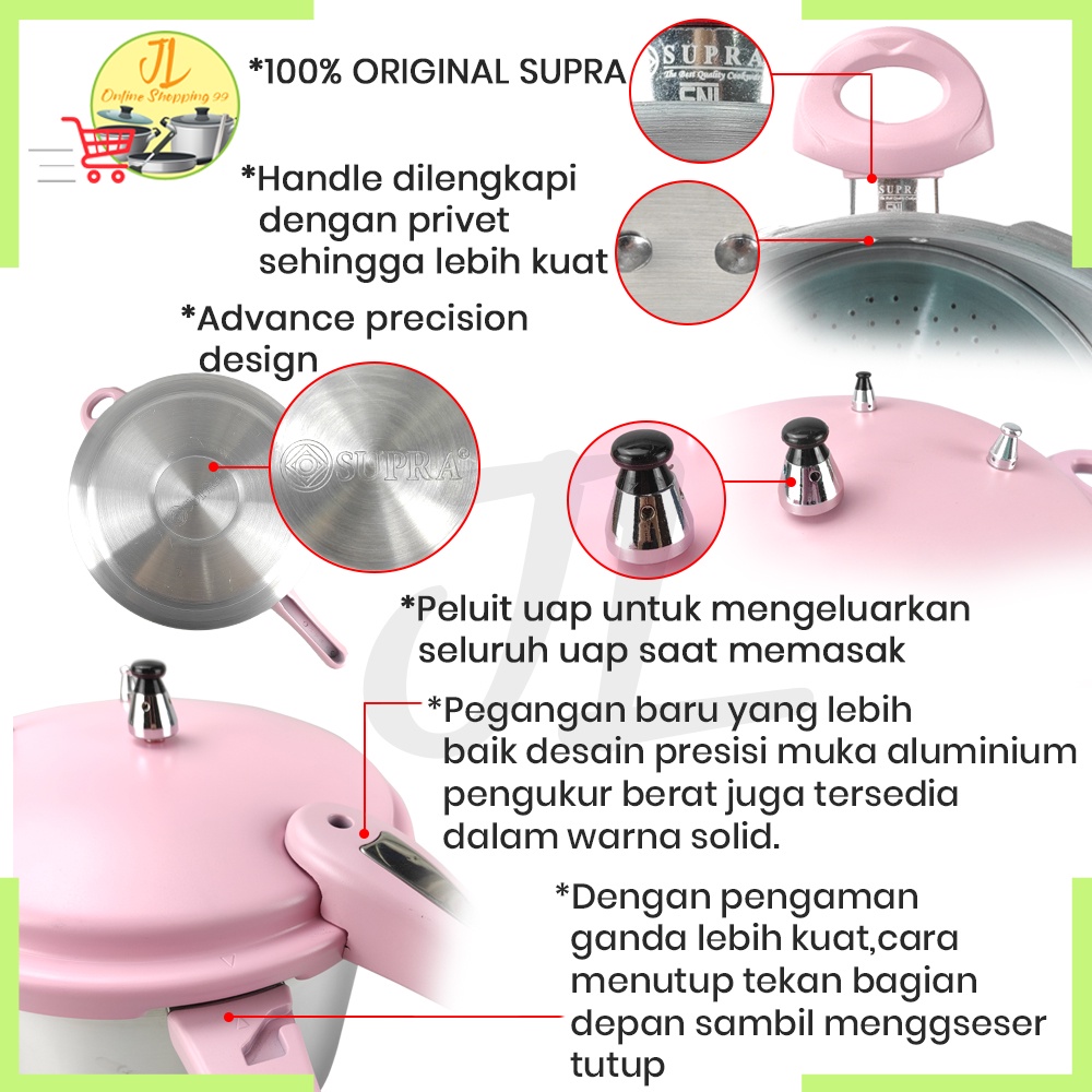 New SUPRA Panci presto 12liter + steamer + tutup kaca pastel Pink / pressure cooker alumunium / pengempuk kukusan