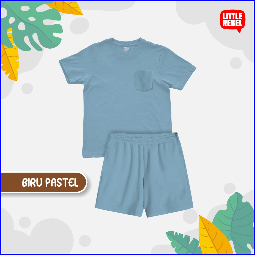 Littlerebel Setelan Polos Anak Set Pocket Sky Series Unisex Usia 1 - 9 Tahun