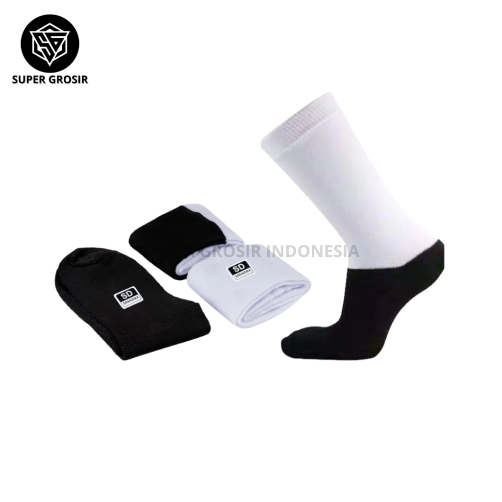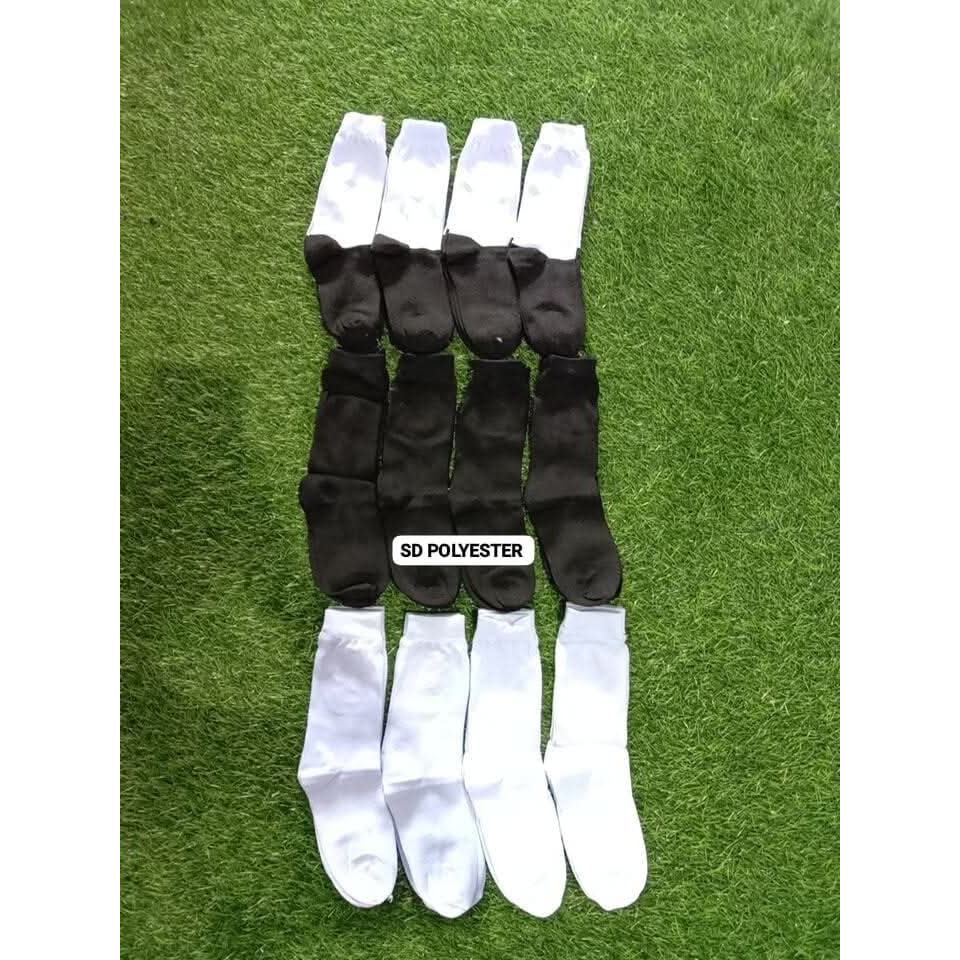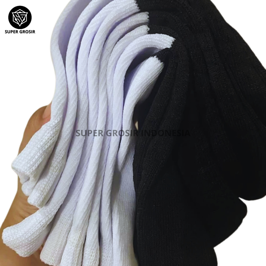 Kaos Kaki Sekolah SD SMP SMA Panjang Sebetis Hitam Putih, Hitam dan Putih Polos 6 Pasang