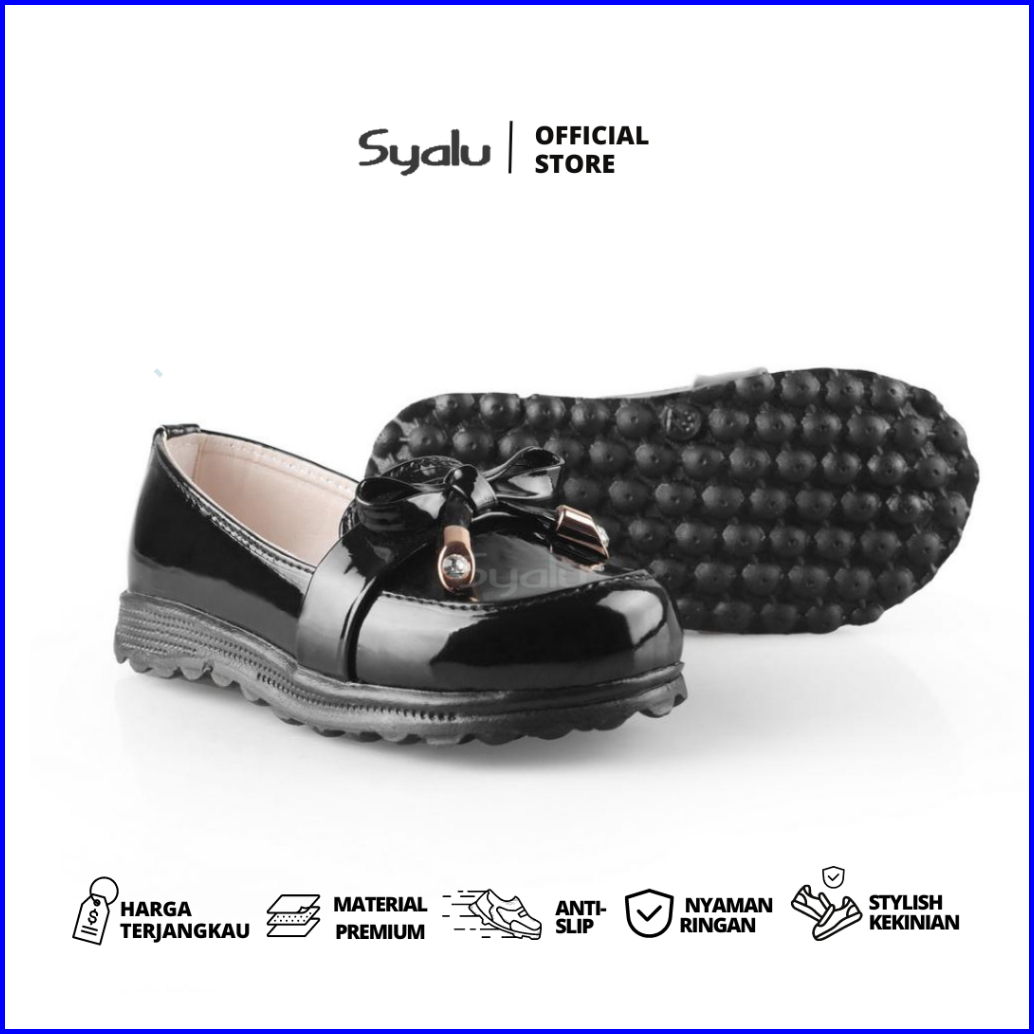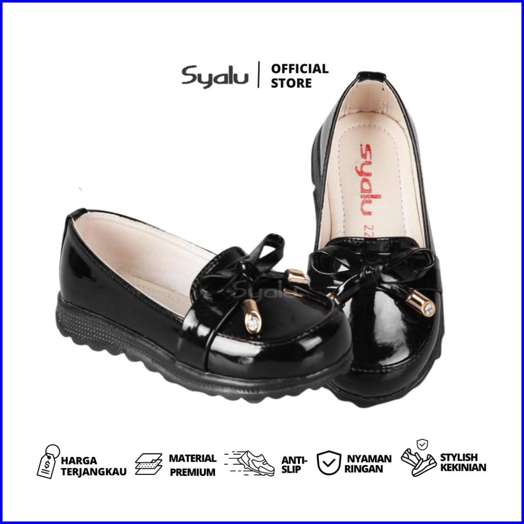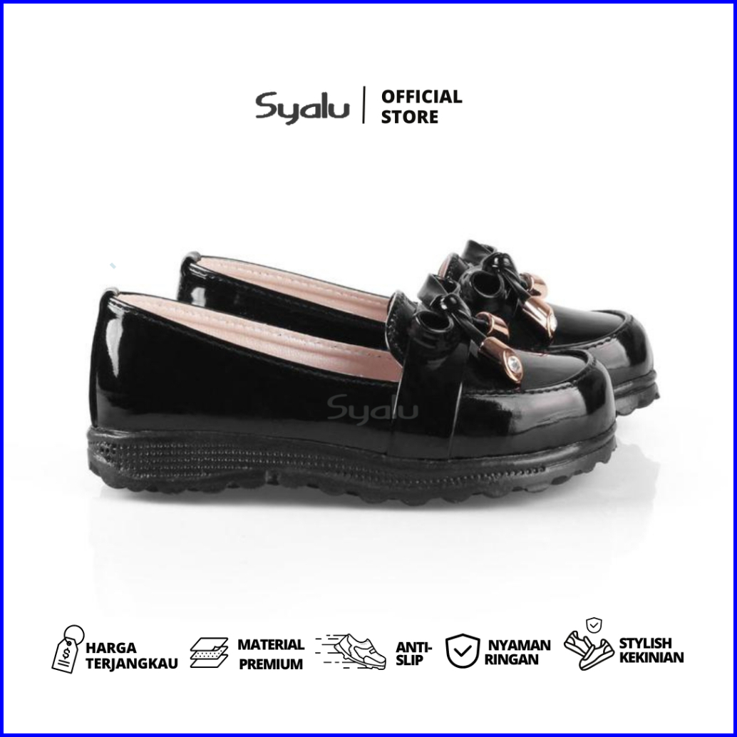 Syalu Sepatu Slip On Motif Pita Hitam Glossy Sepatu Anak Ootd Kece Sp2