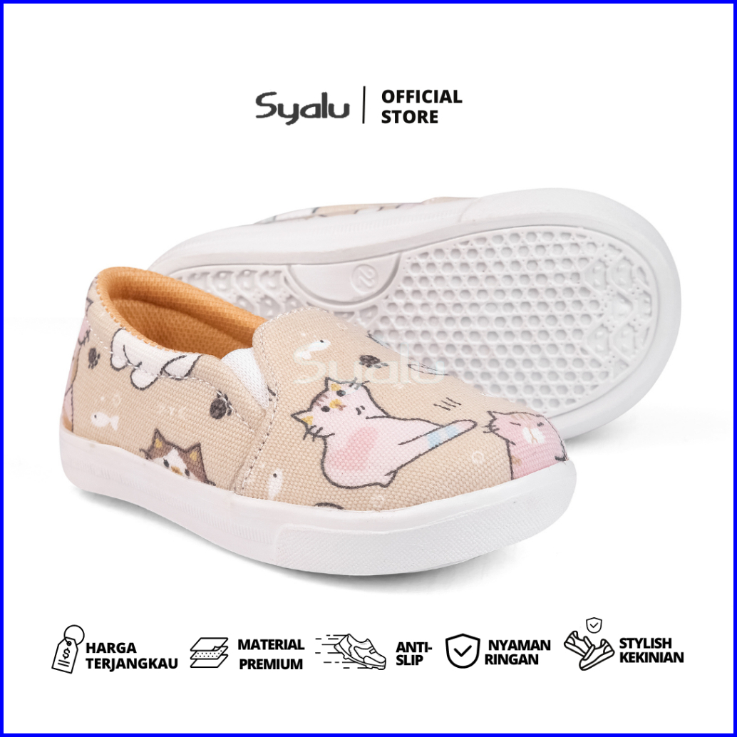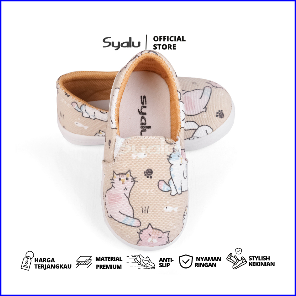 Syalu Sepatu Anak Slip On Unisex Umur 1-2 Tahun Kanvas E01 Kucing Cream