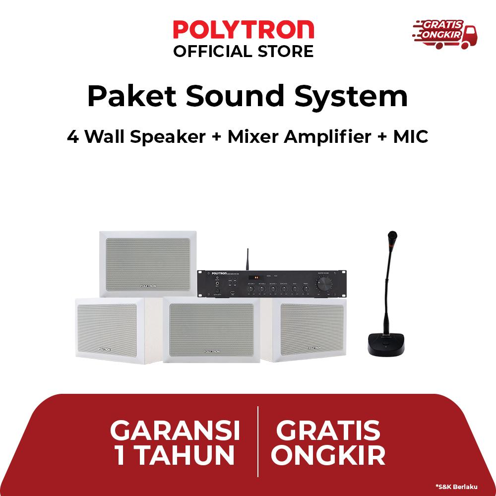 Polytron Sound System Sekolah Masjid Mushola Kantor (4 Wall Speaker) + Amplifier + Microphone