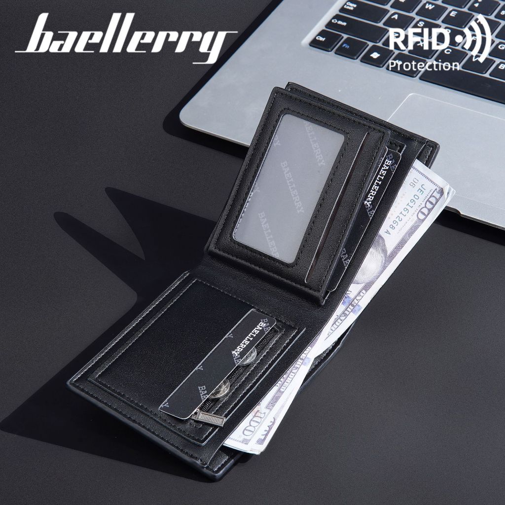 BAELLERRY D2396 Dompet Pria Lipat RFID Protect Bahan Kulit PU Leather Premium BAEOS