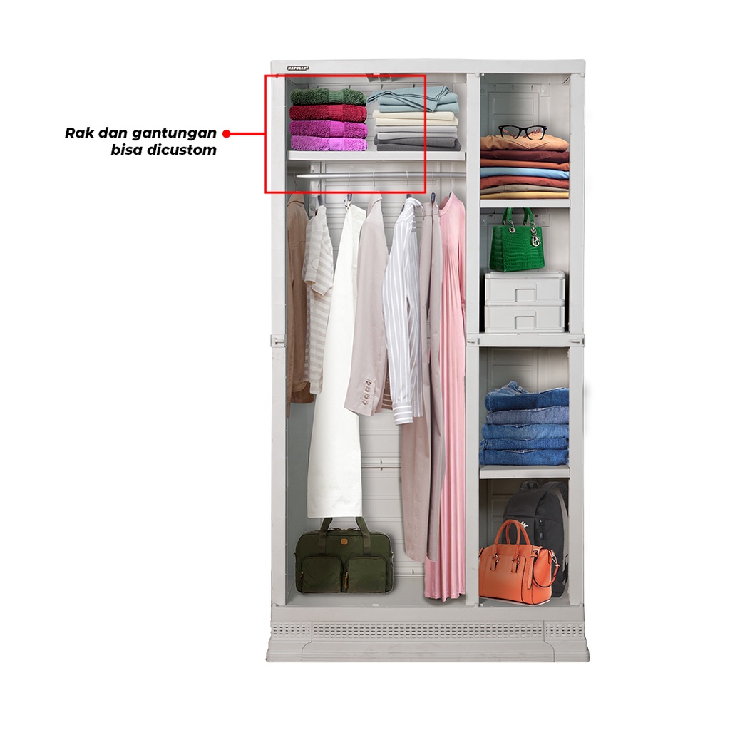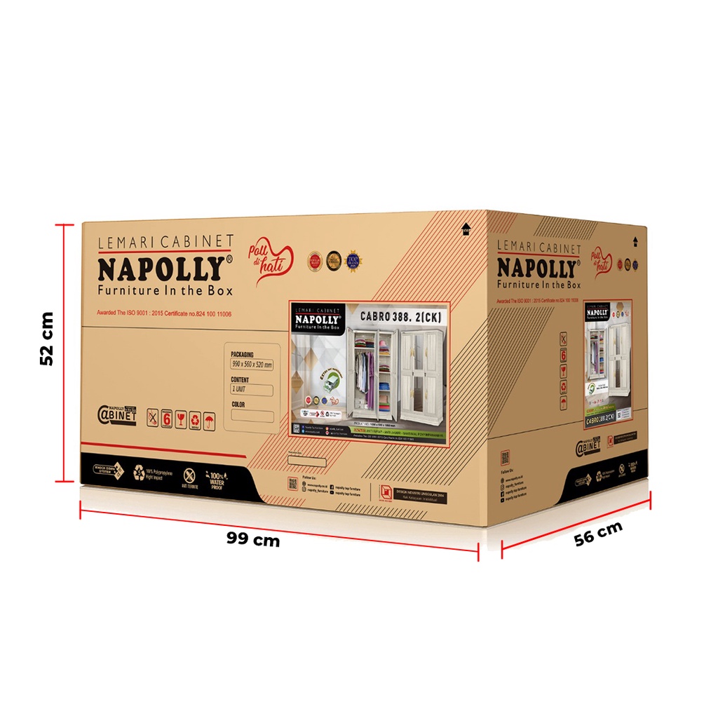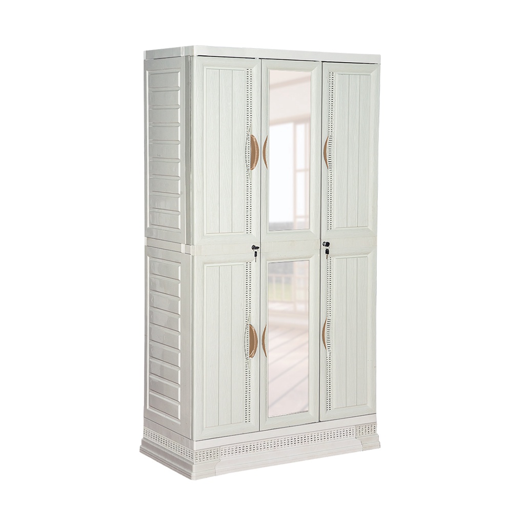LEMARI PAKAIAN PLASTIK NAPOLLY 3 PINTU + GANTUNGAN + RAK + 2 CERMIN MUDAH DIRAKIT MOTIF URAT KAYU ORIGINAL TERMURAH