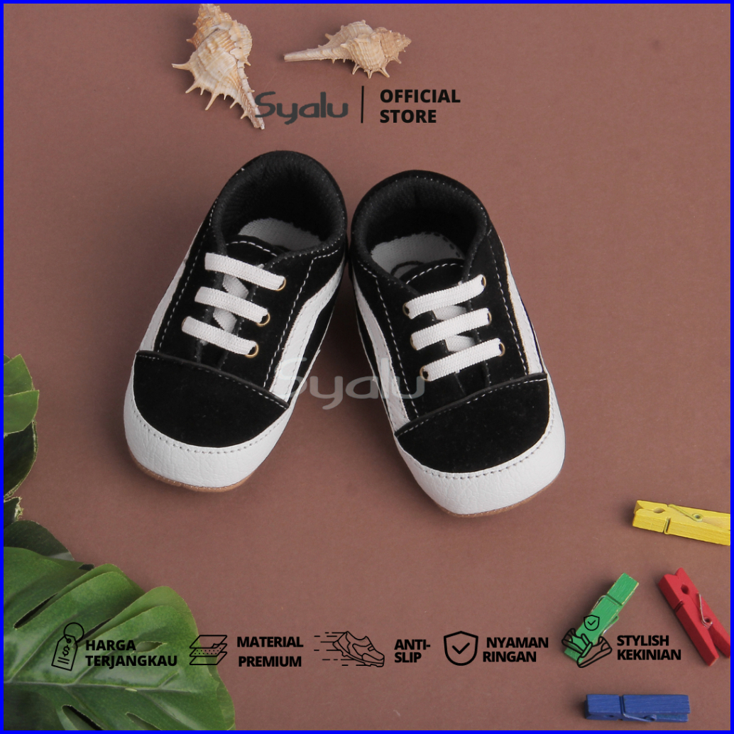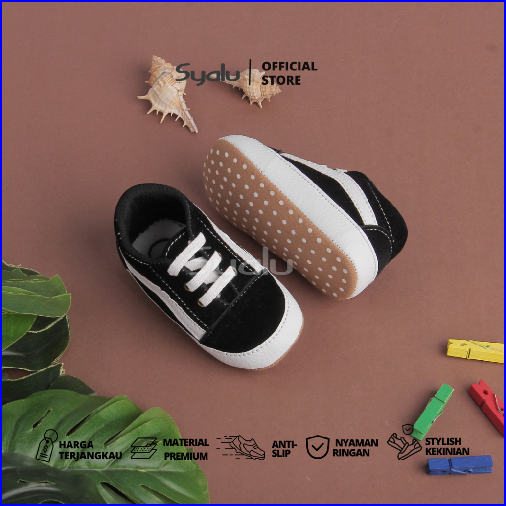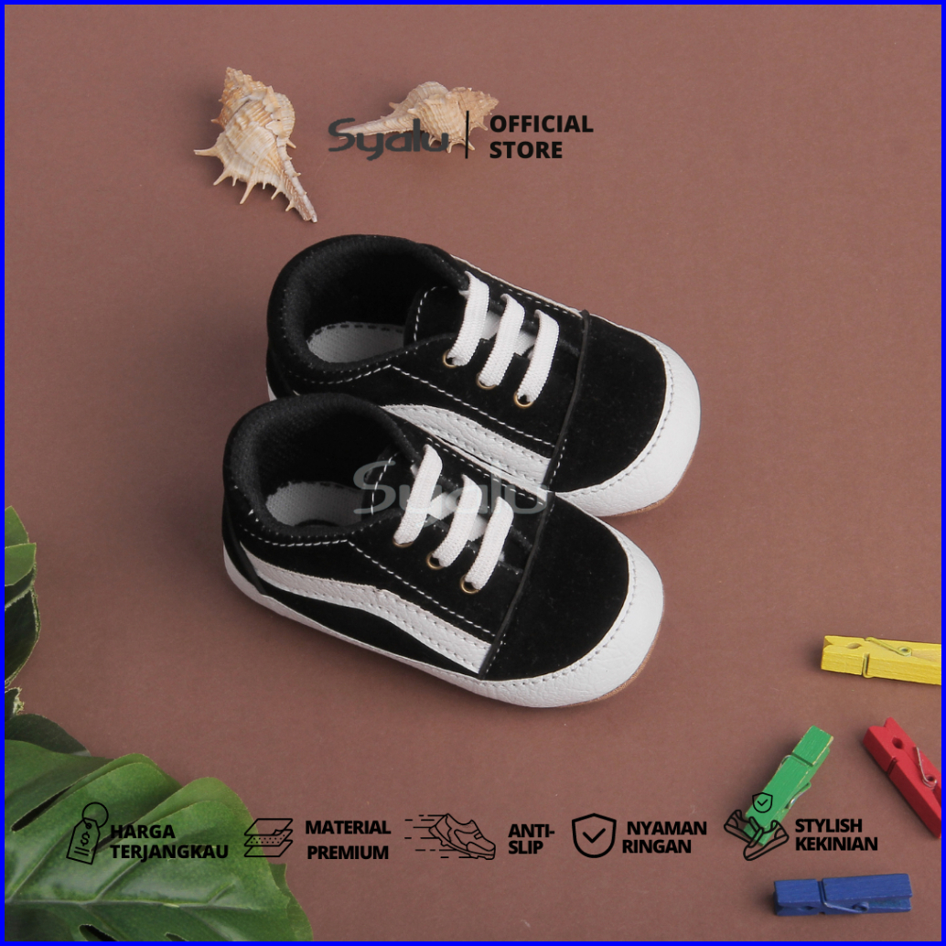 Syalu Sepatu Anak New Born Hitam Bahan Suede Lembut Nb