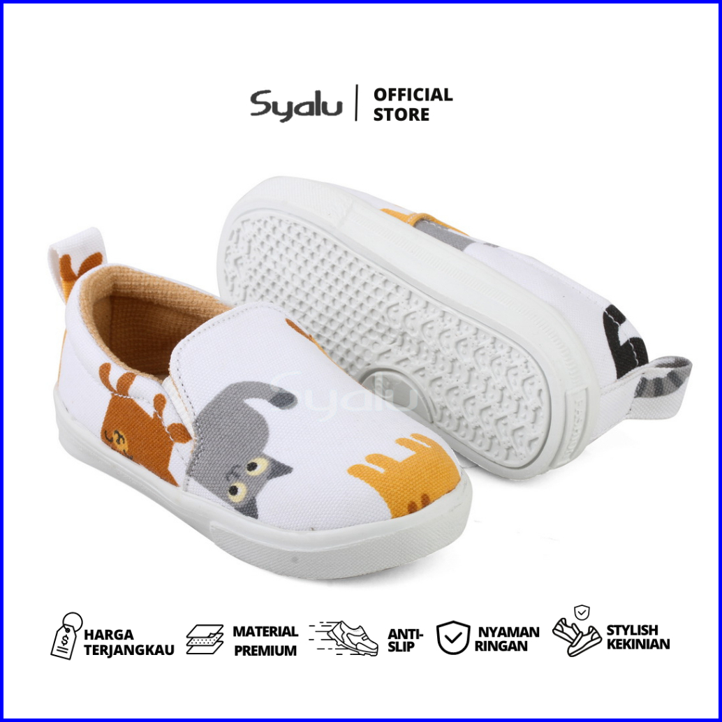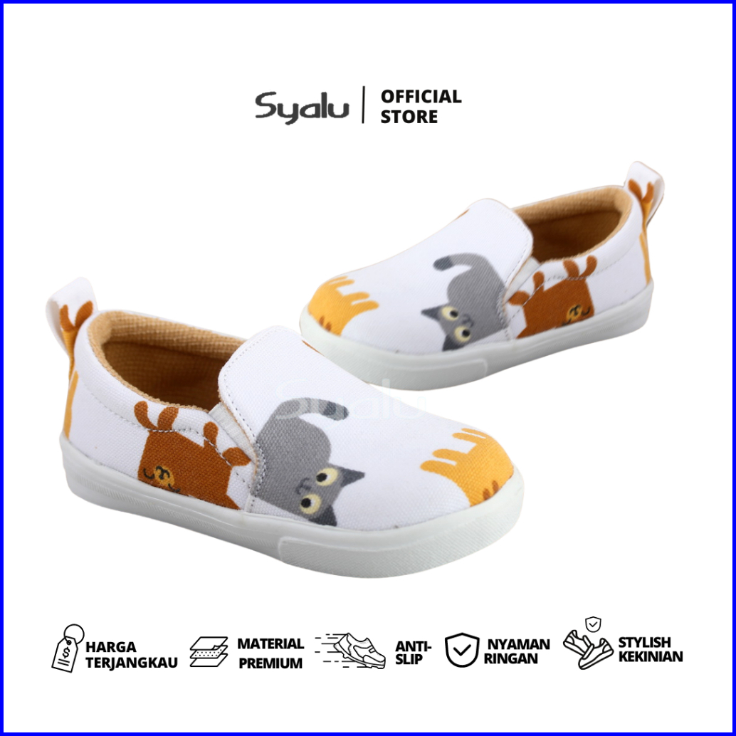Syalu Sepatu Anak Slip On Unisex Umur 1 2 Tahun Kanvas E01 Kucing Putih