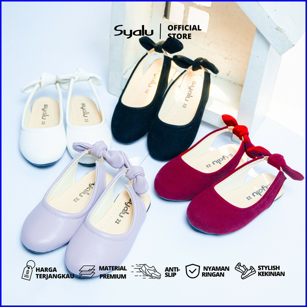 Syalu Sepatu Flat Shoes Anak Perempuan Anak 1 Sampai 2 Tahun Tali Pita Anti Slip Ivona