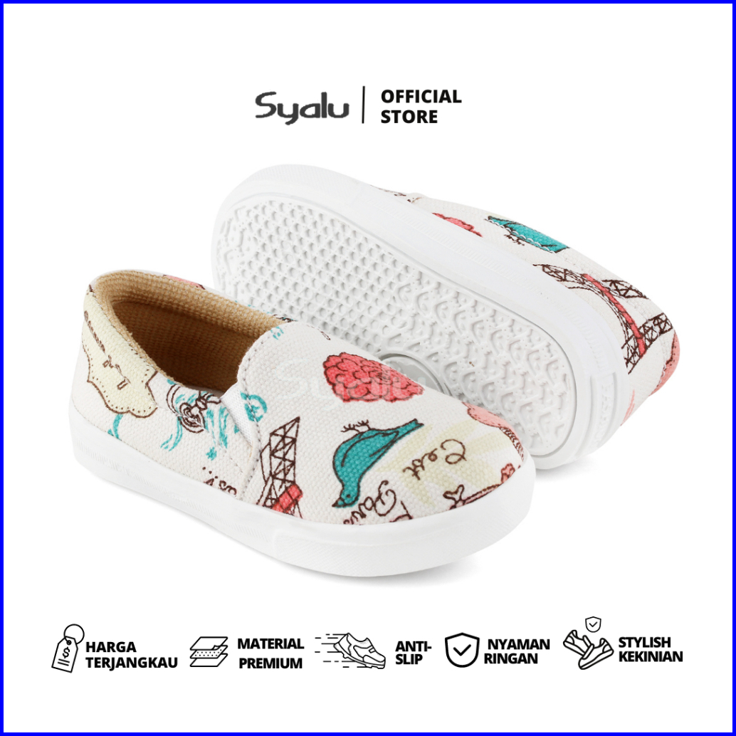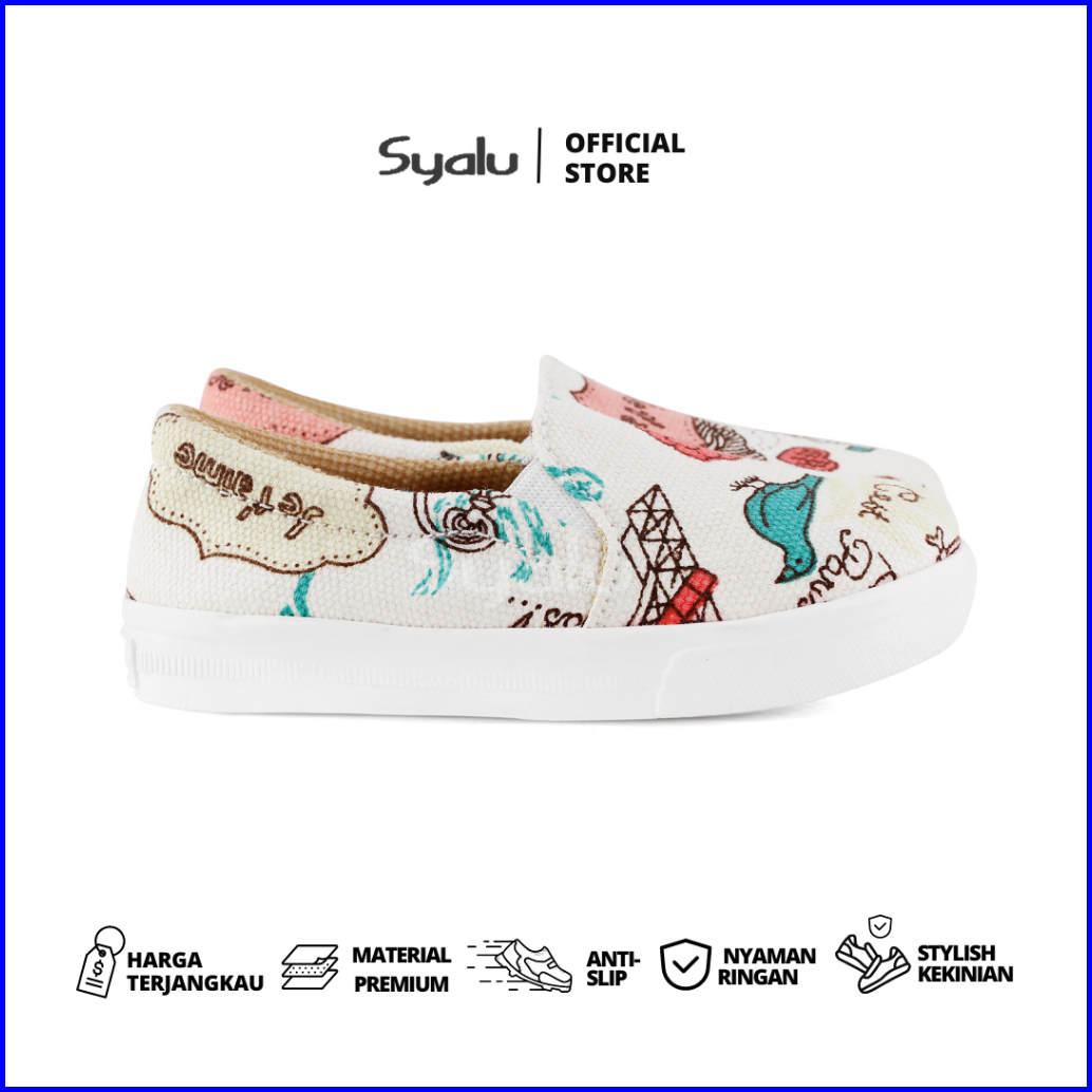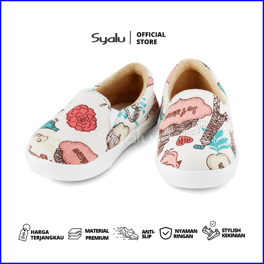 Syalu Sepatu Anak Slip On Bahan Canvas Motif Ringan E01 Paris