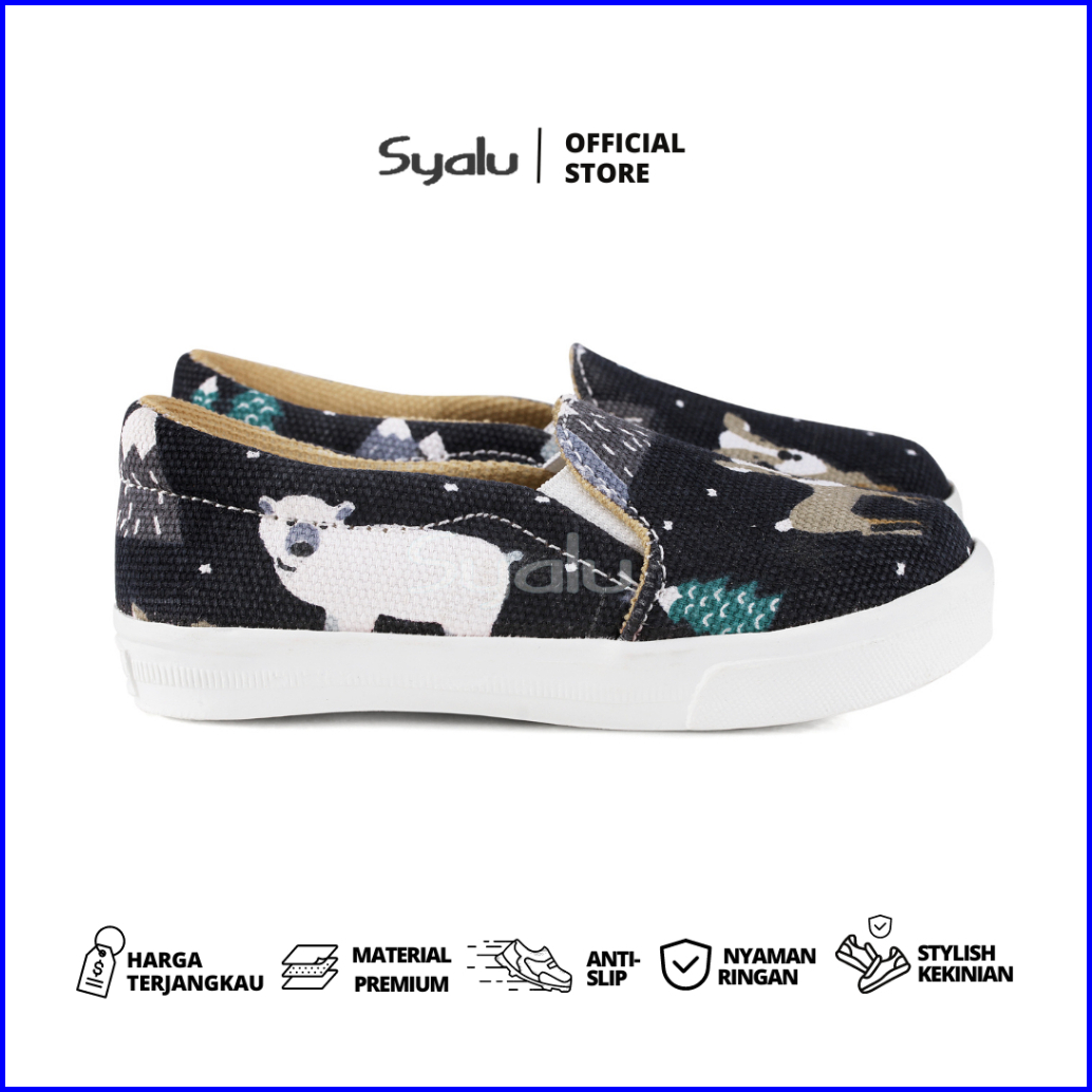 Syalu Sepatu Anak Slip On Motif Beruang Bahan Canvas E01 Beruang