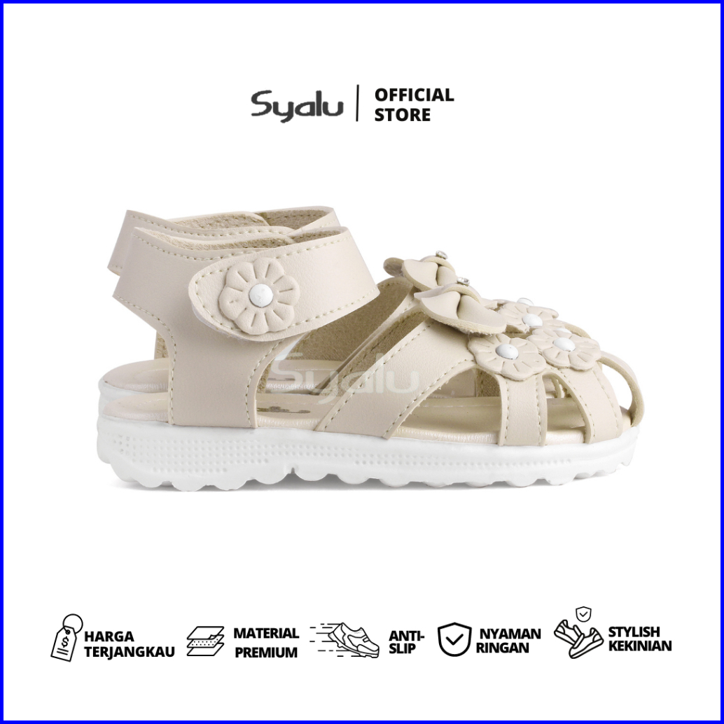 Syalu Sendal Anak Cewek Sintetis Aksesoris Bunga Cream Rlb