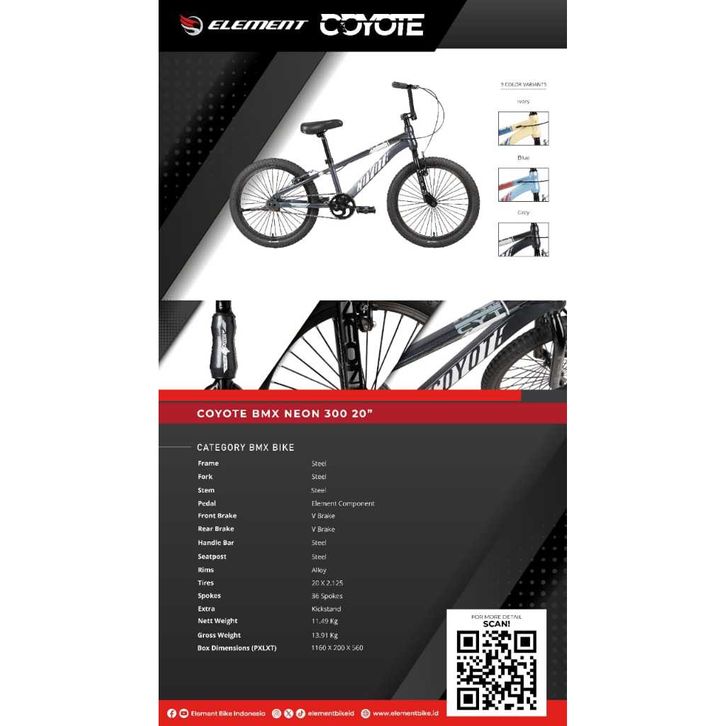BMX 20" INCH NEON 300 VBRAKE / 300D DISCBRAKE COYOTE BY ELEMENT ORIGINAL - Sepeda Anak Laki