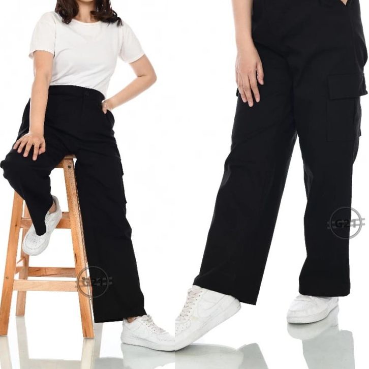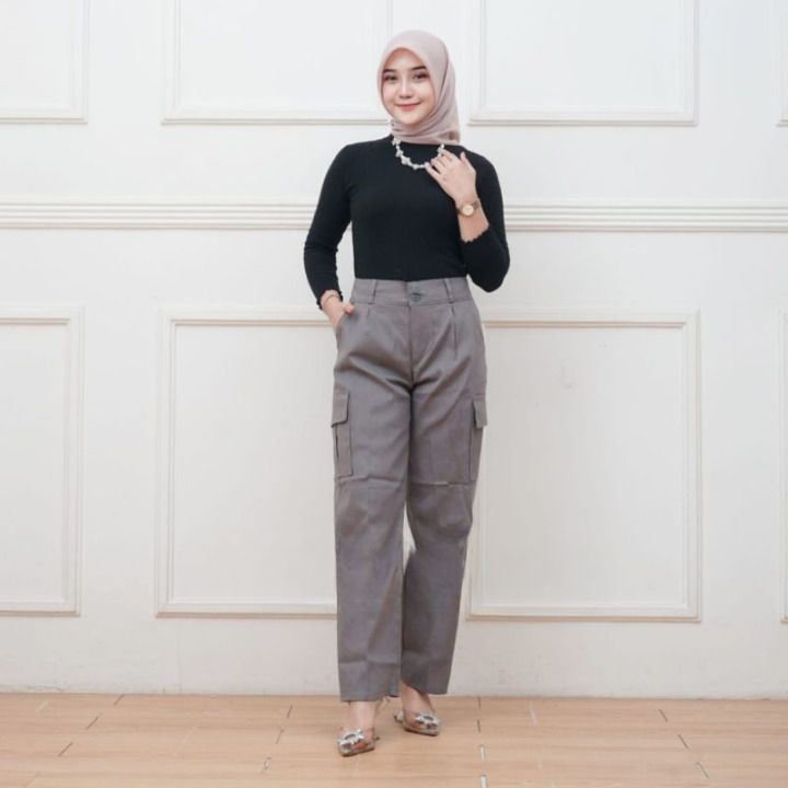 Celana Kargo Panjang Wanita Highwaist Jumbo Premium Bahan American Drill Size M L Xl XXL OOTD Korean Style Celana Cargo