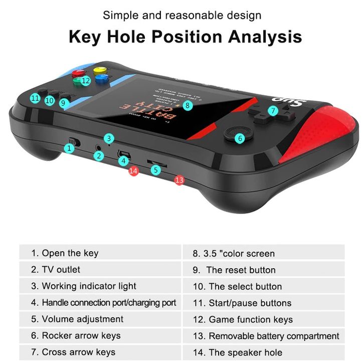 Konsol Game Retro Portable X7M Merah - 500 Game dalam 1 dengan Dual Joystick, Dukungan 2 Player