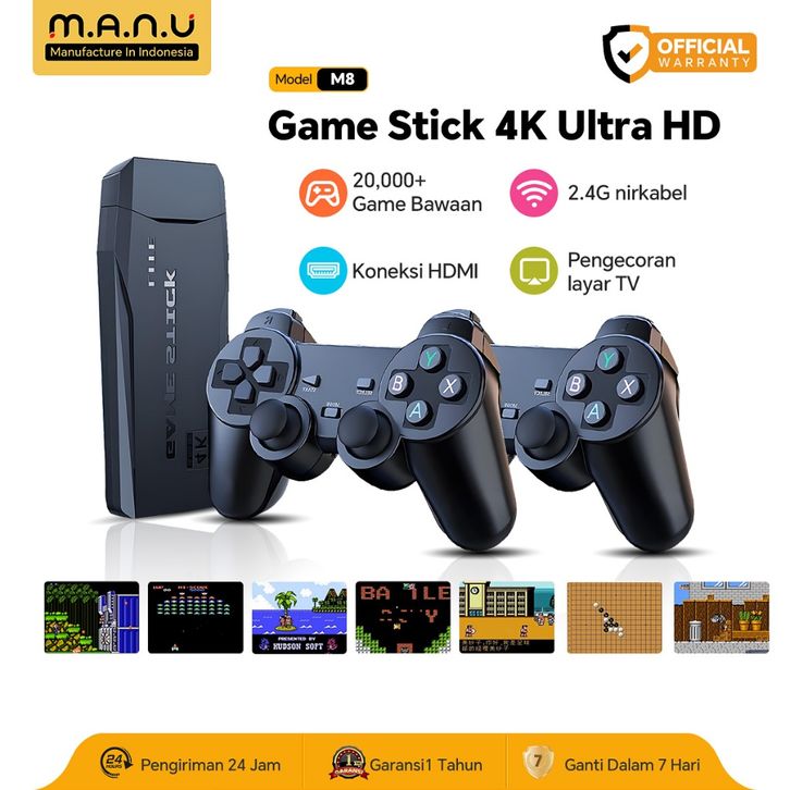 Manu Smart Gameboy M8 Video Game Box Console 2.4G Stick 4K Ultra HD Nirkabel 2.4G Konsol Permainan