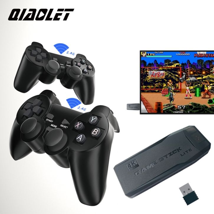 QIAOLET Game Stick 10000+ Games Classic TV Game Console 4K Video Game Console Wireless Gamepad PC