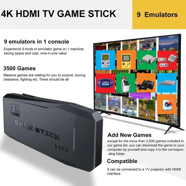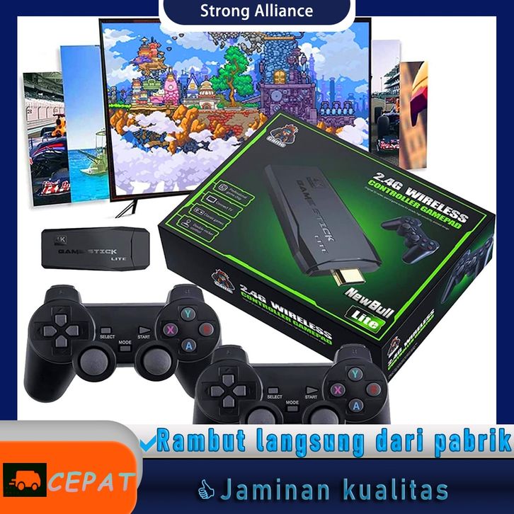 Konsol Video Game 2.4G, Pengontrol nirkabel ganda 4K 10000 + Game 64GB Game Retro